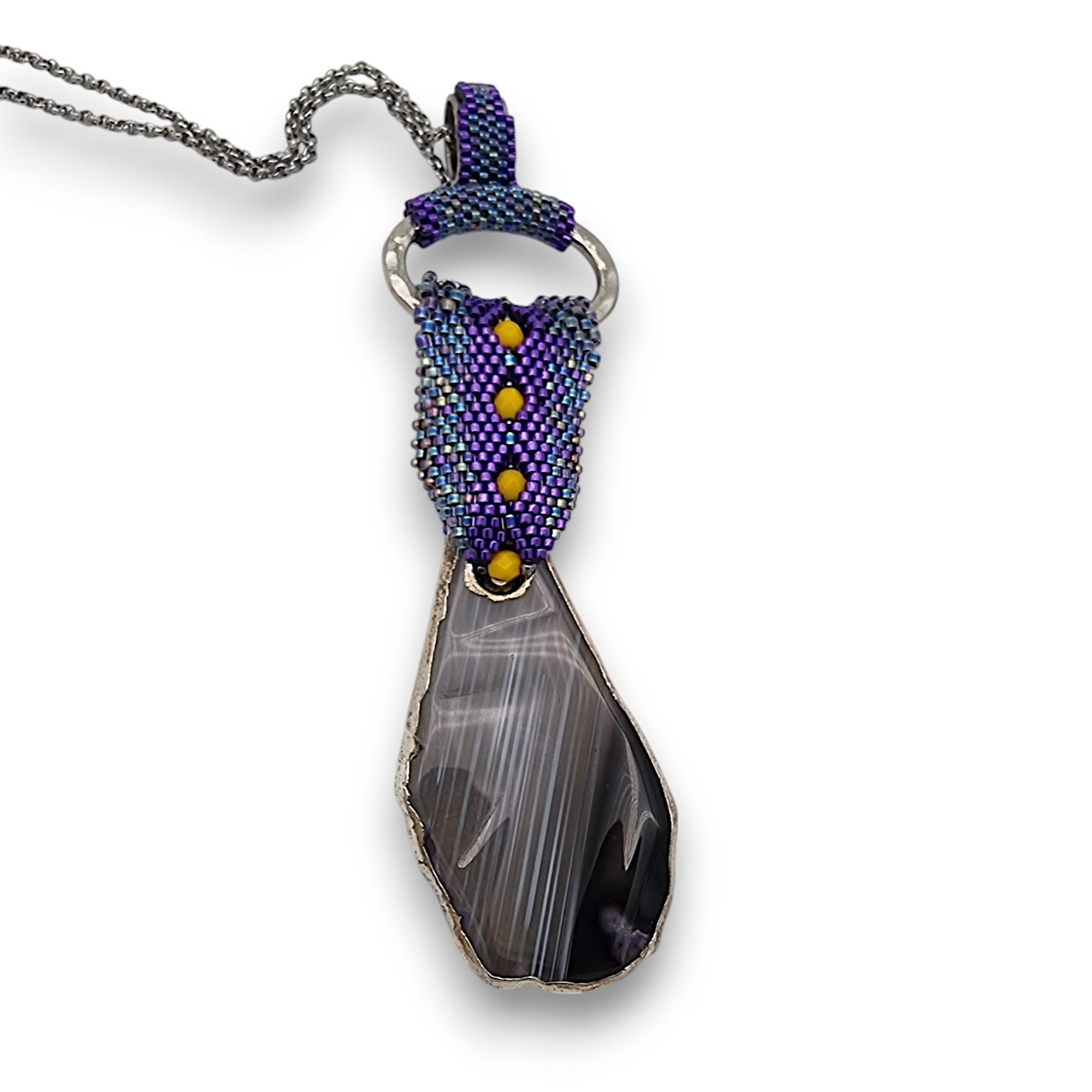 Colier pandantiv lung cu Agat mare brut, cu formă alungită, neregulată.