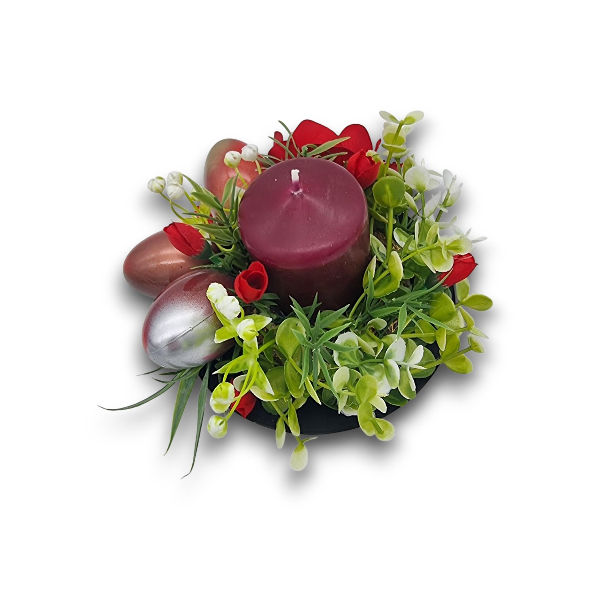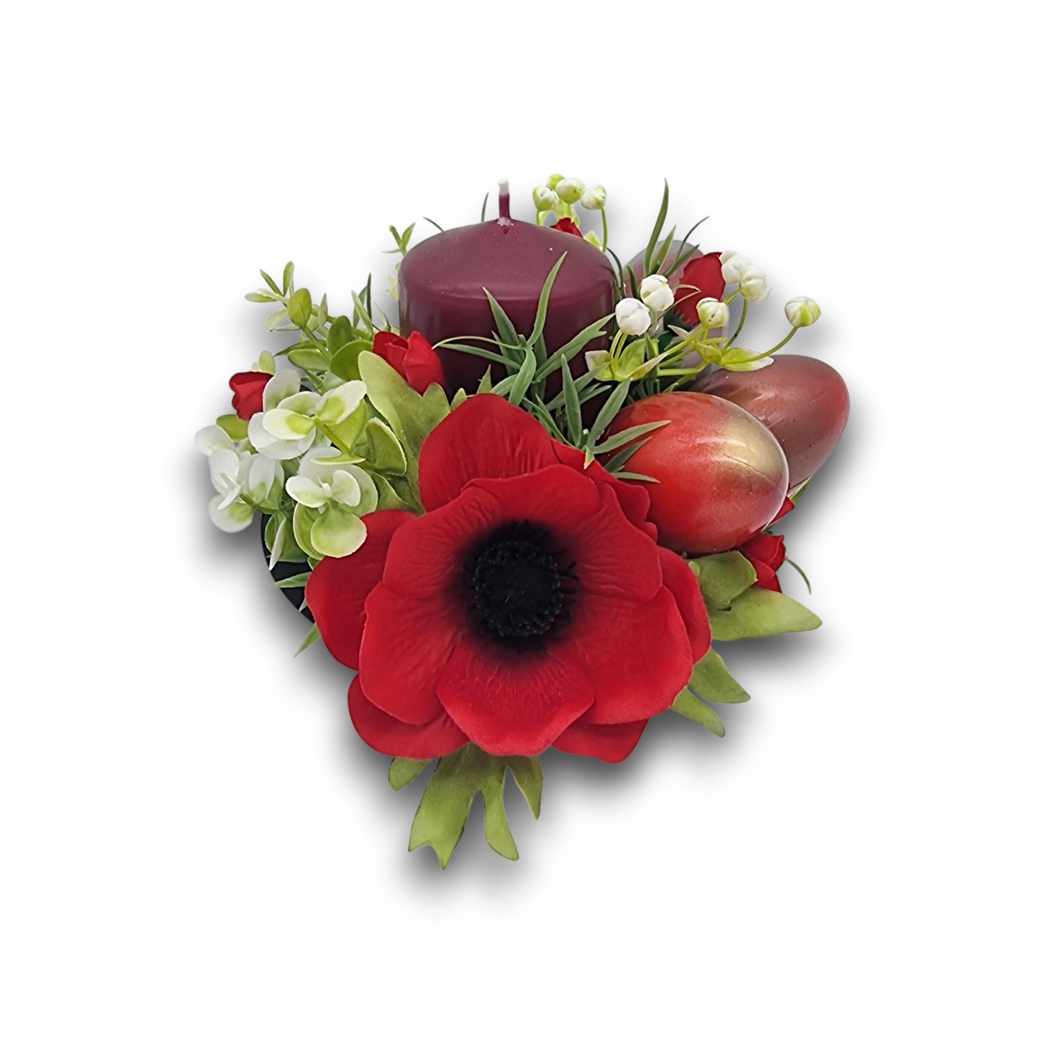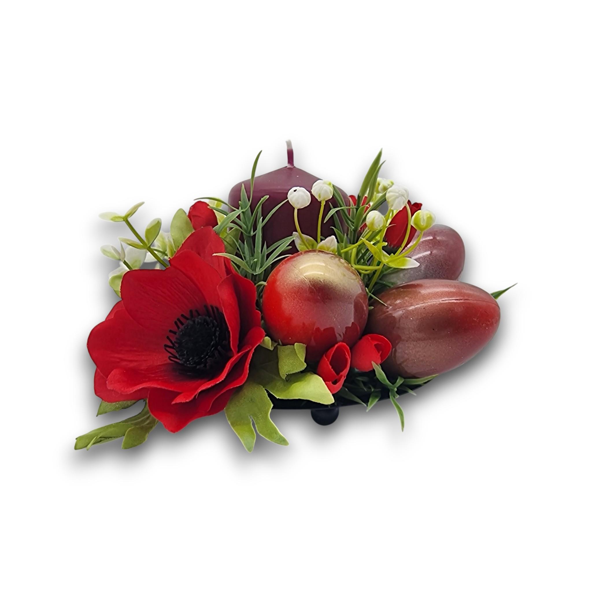 Aranjament Cadou de Paște cu Lumânare și Mac, 17×11 cm