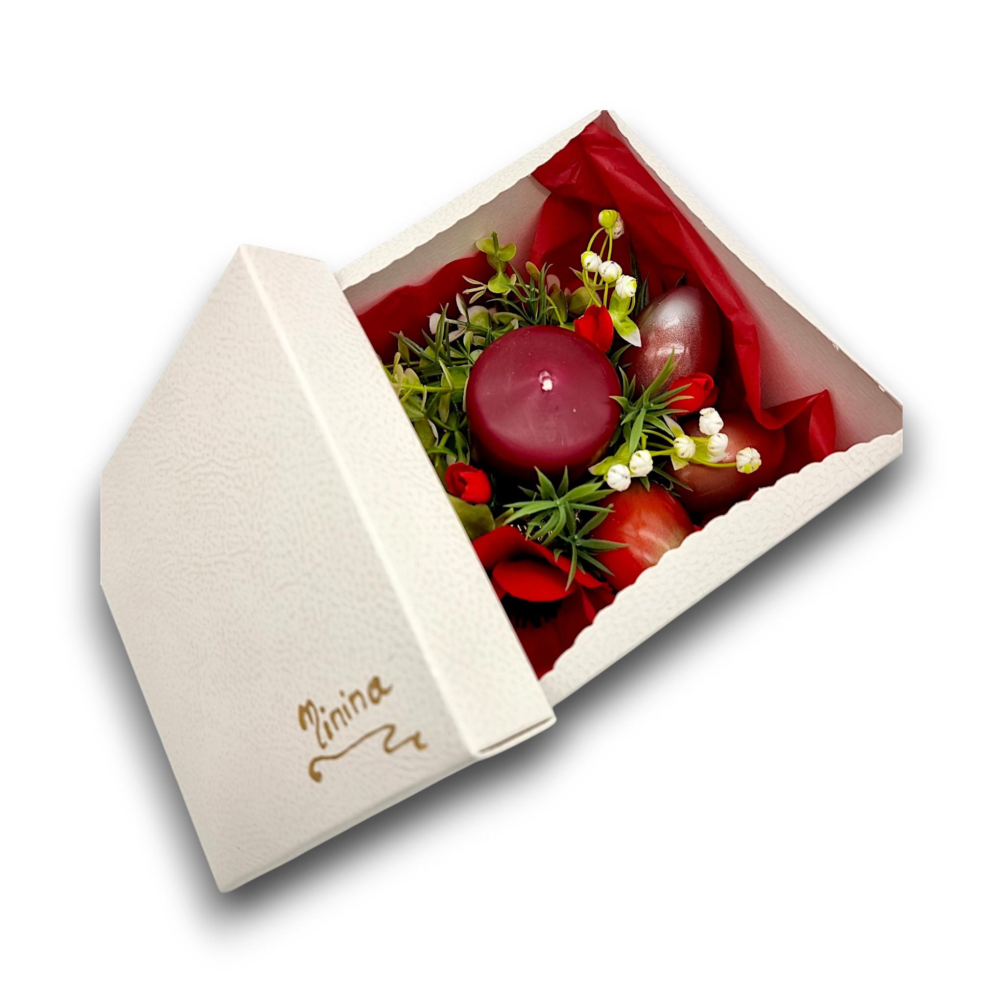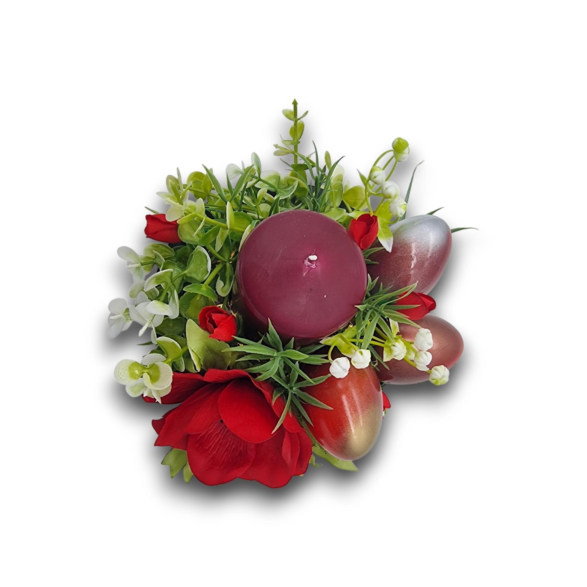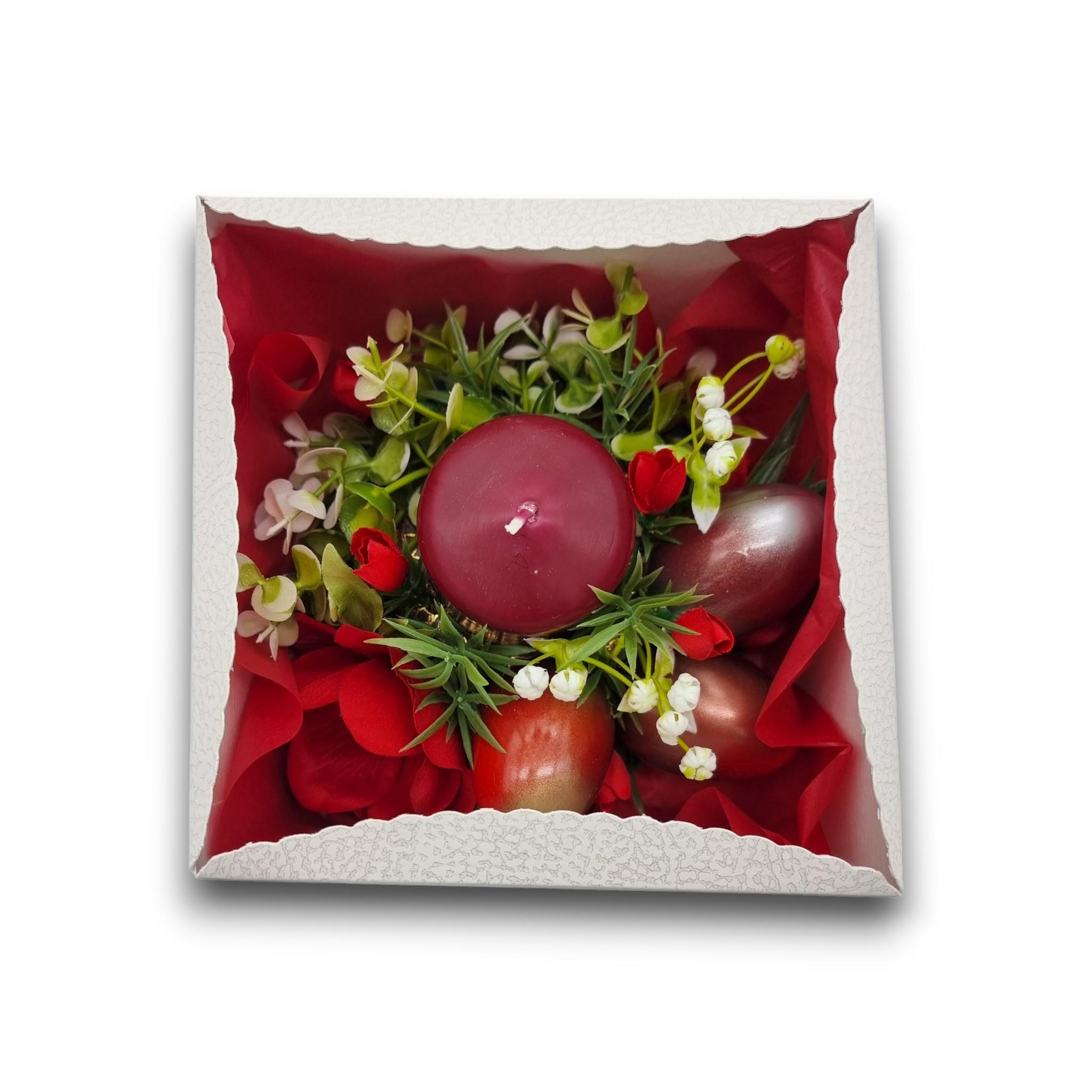 Aranjament Cadou de Paște cu Lumânare și Mac, 17×11 cm