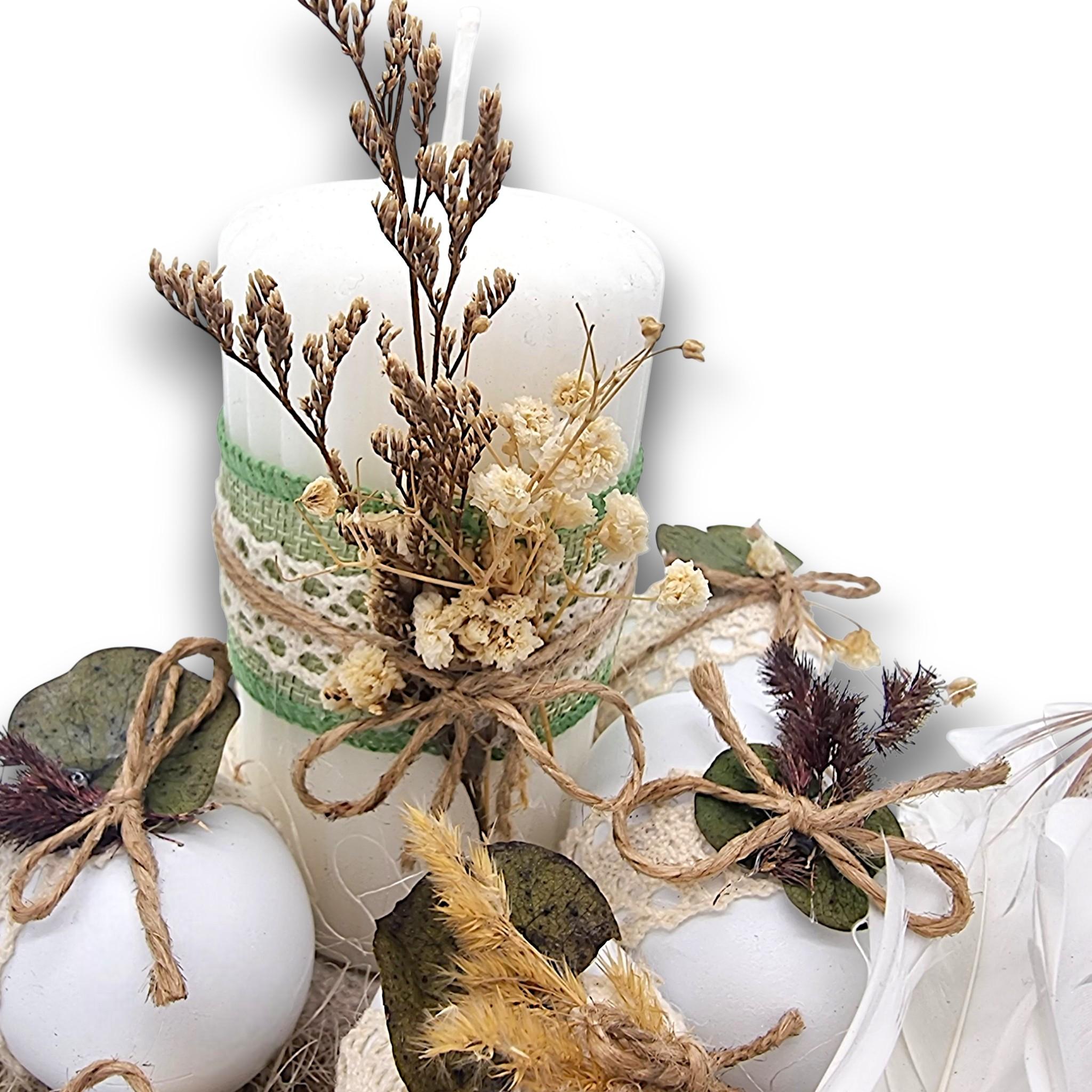 Aranjament Pascal 24 cm, boho/rustic, cu lumânare