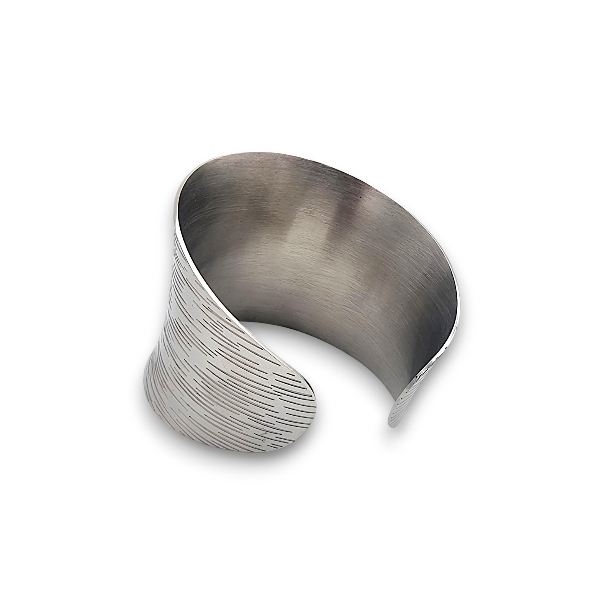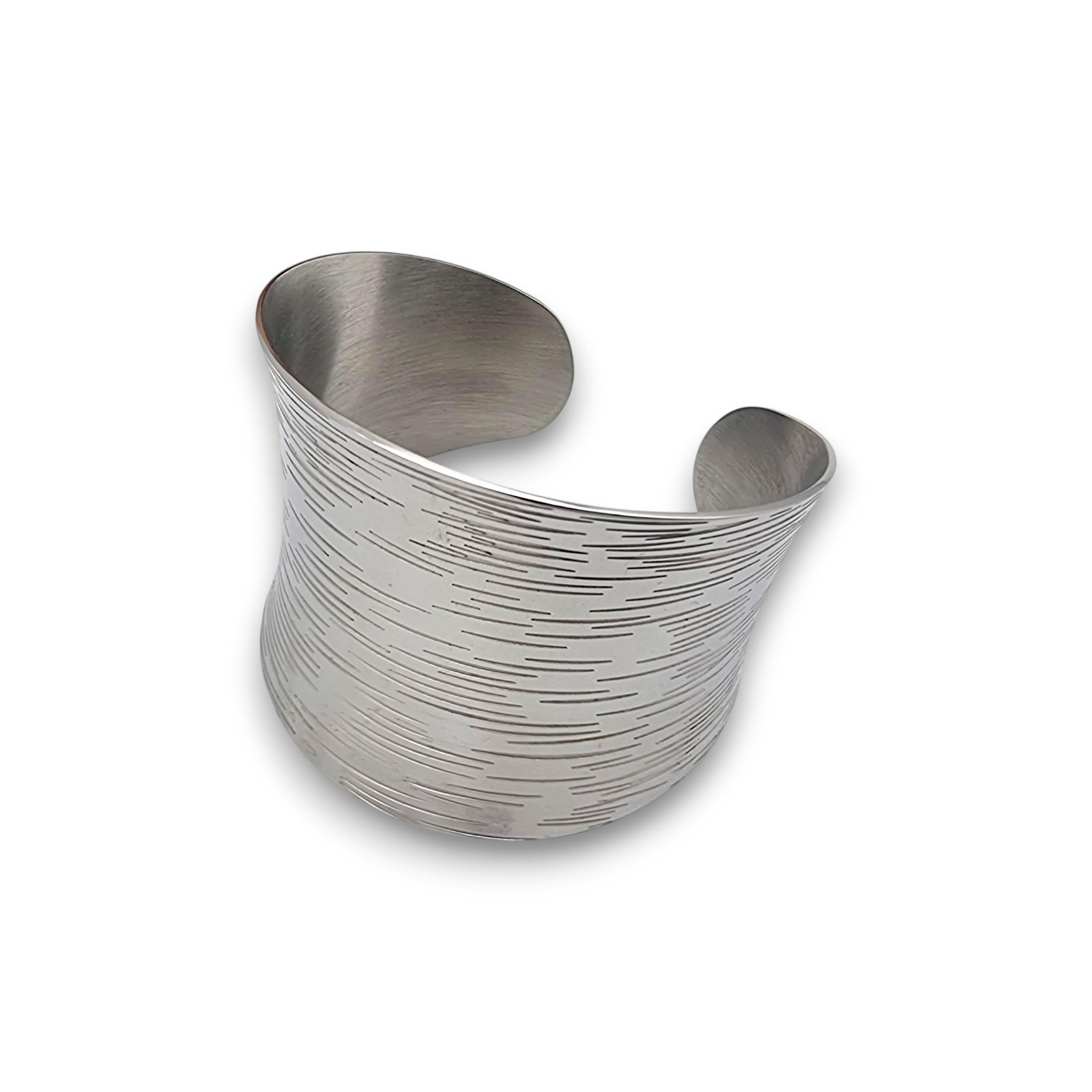 Brățara este dintr-o singura bucată, cu mici rizuri pentru decor.