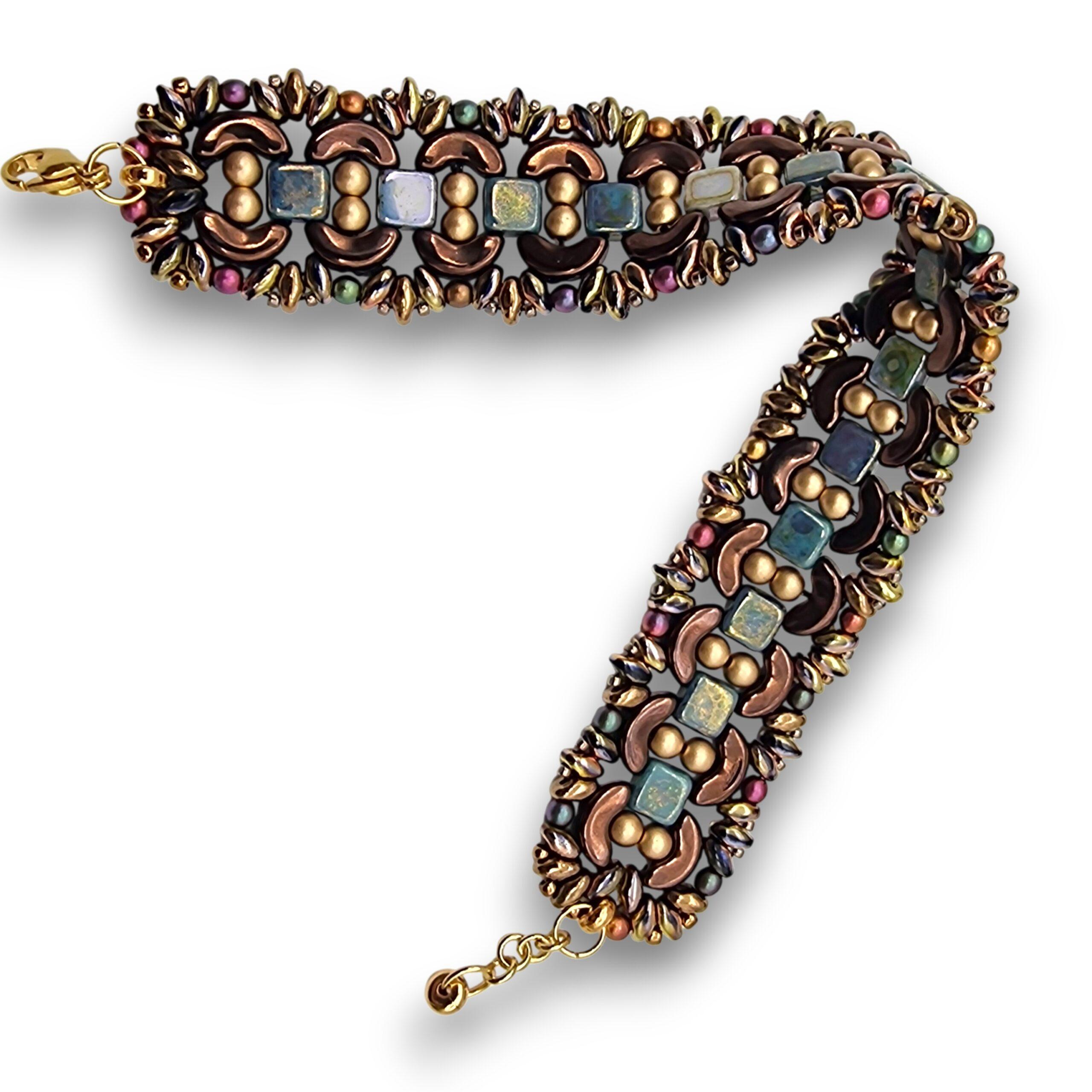Brățară mărgele japoneze, lățime 22 mm – Brățară Handmade „Antique Mosaic” – Textură și Rafinament