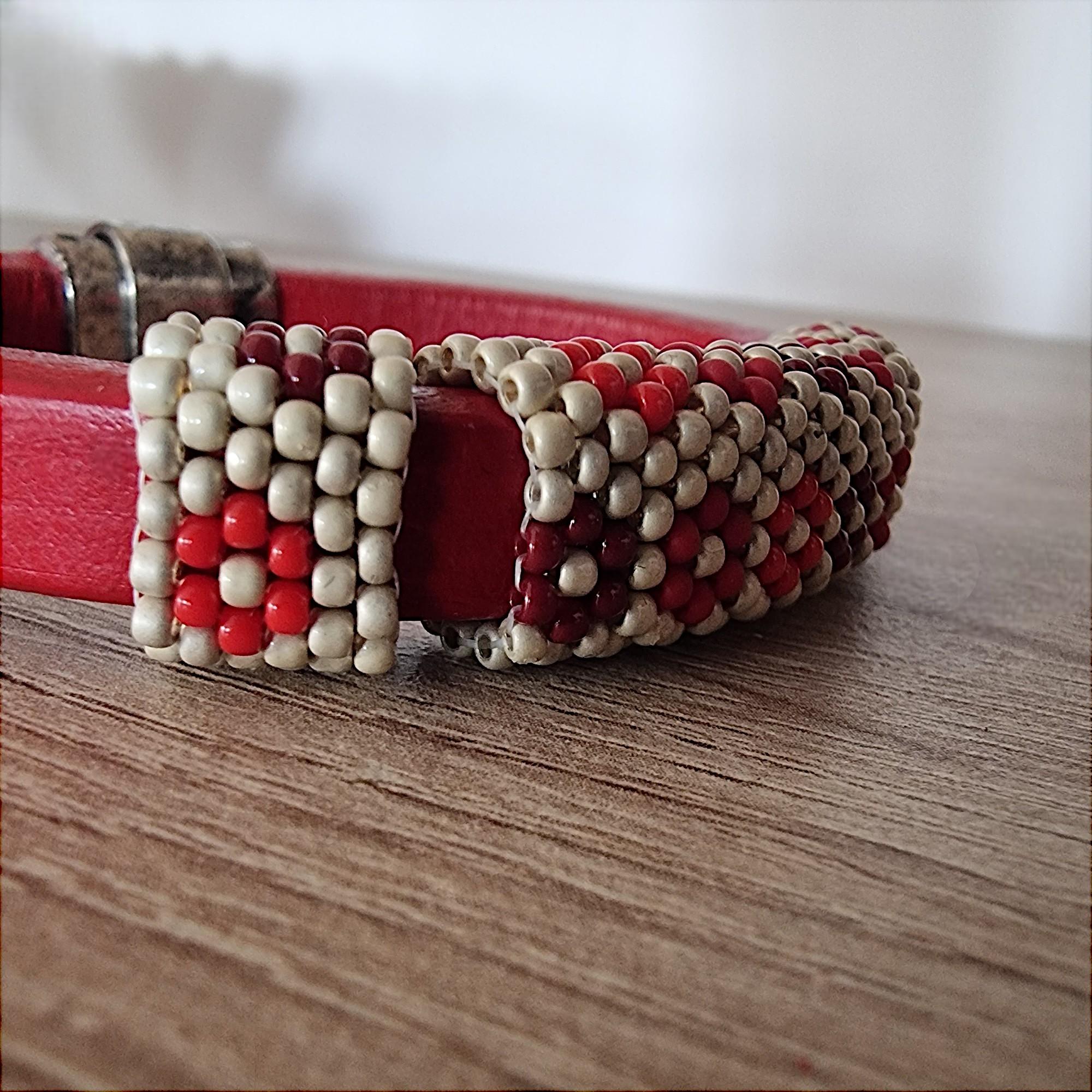 - Țesătură lucrată manual cu tehnica ”Peyote”,din mărgele japoneze Toho 1mm, cu model asemănător cu cusăturile tradiționale