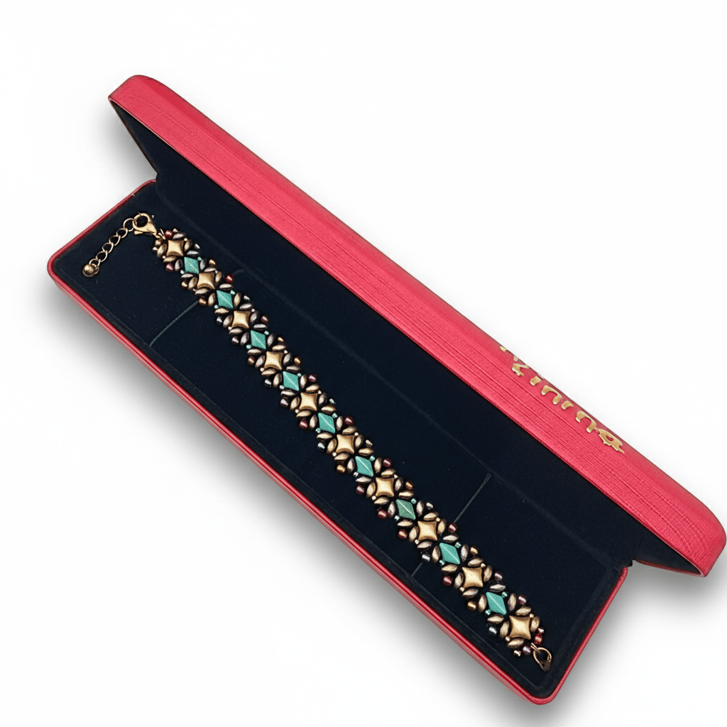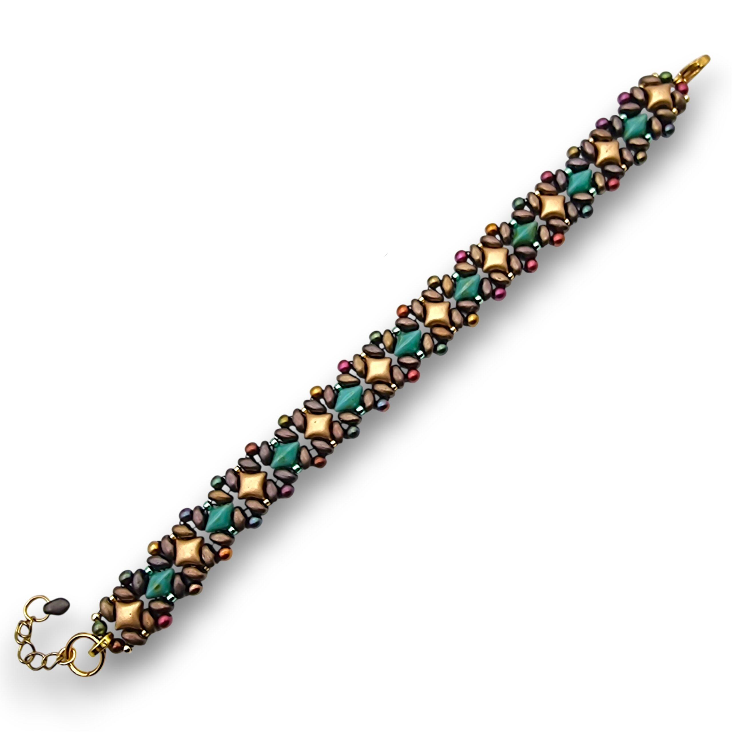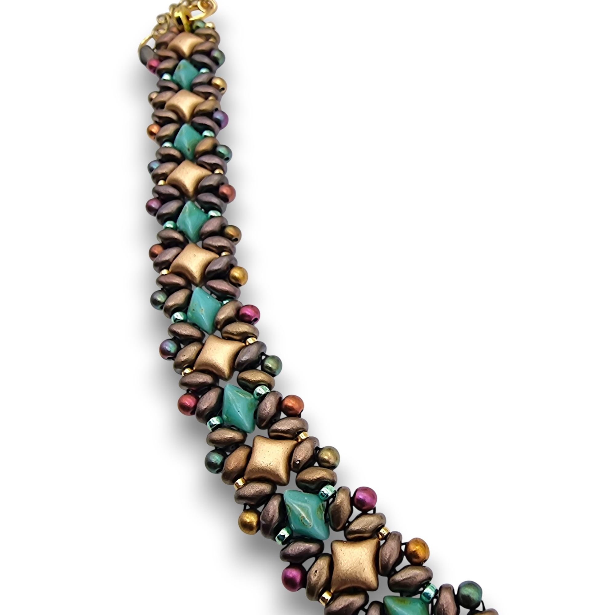 Brățară Țesătură Mărgele – Mărgele din Sticlă Puca și Inox Aurit