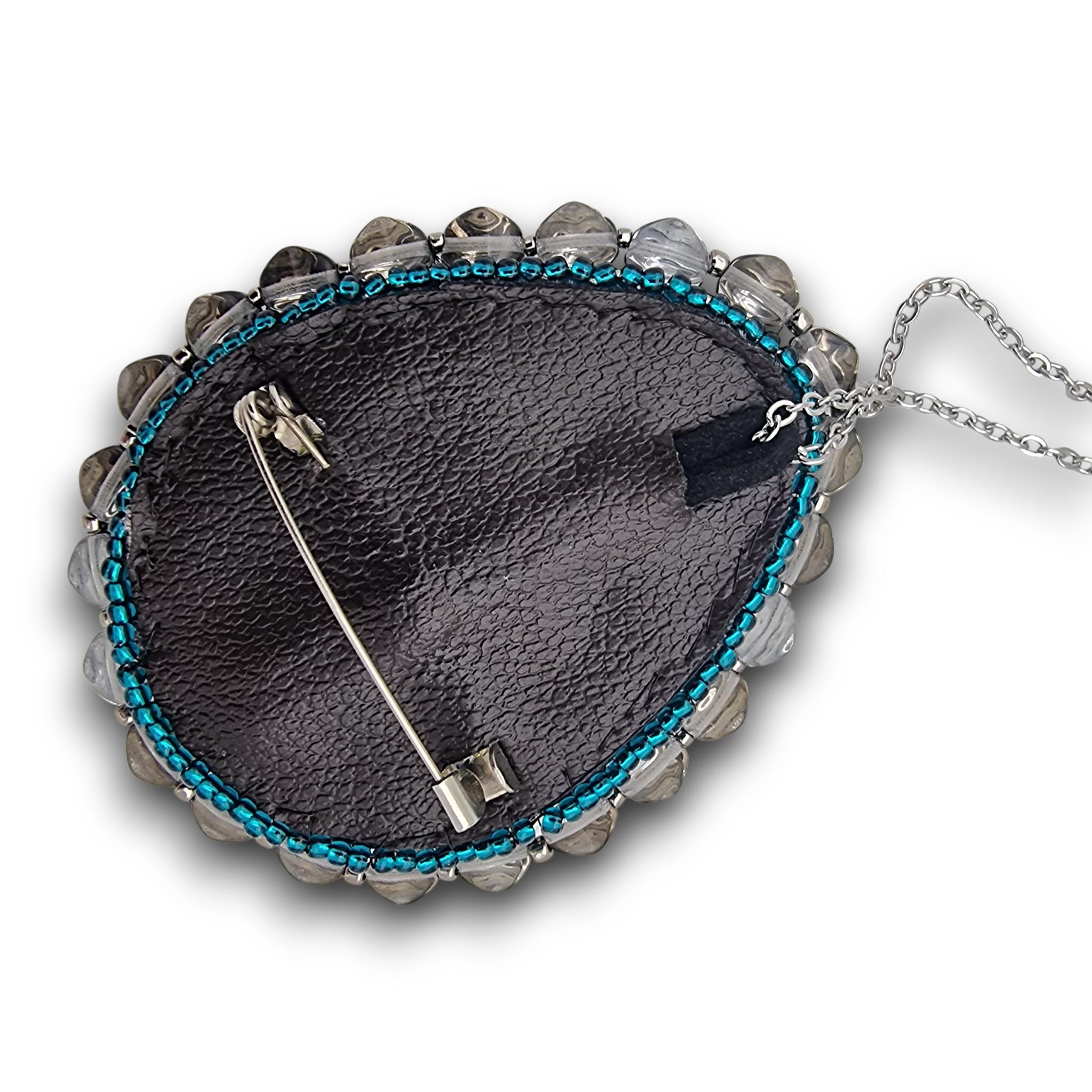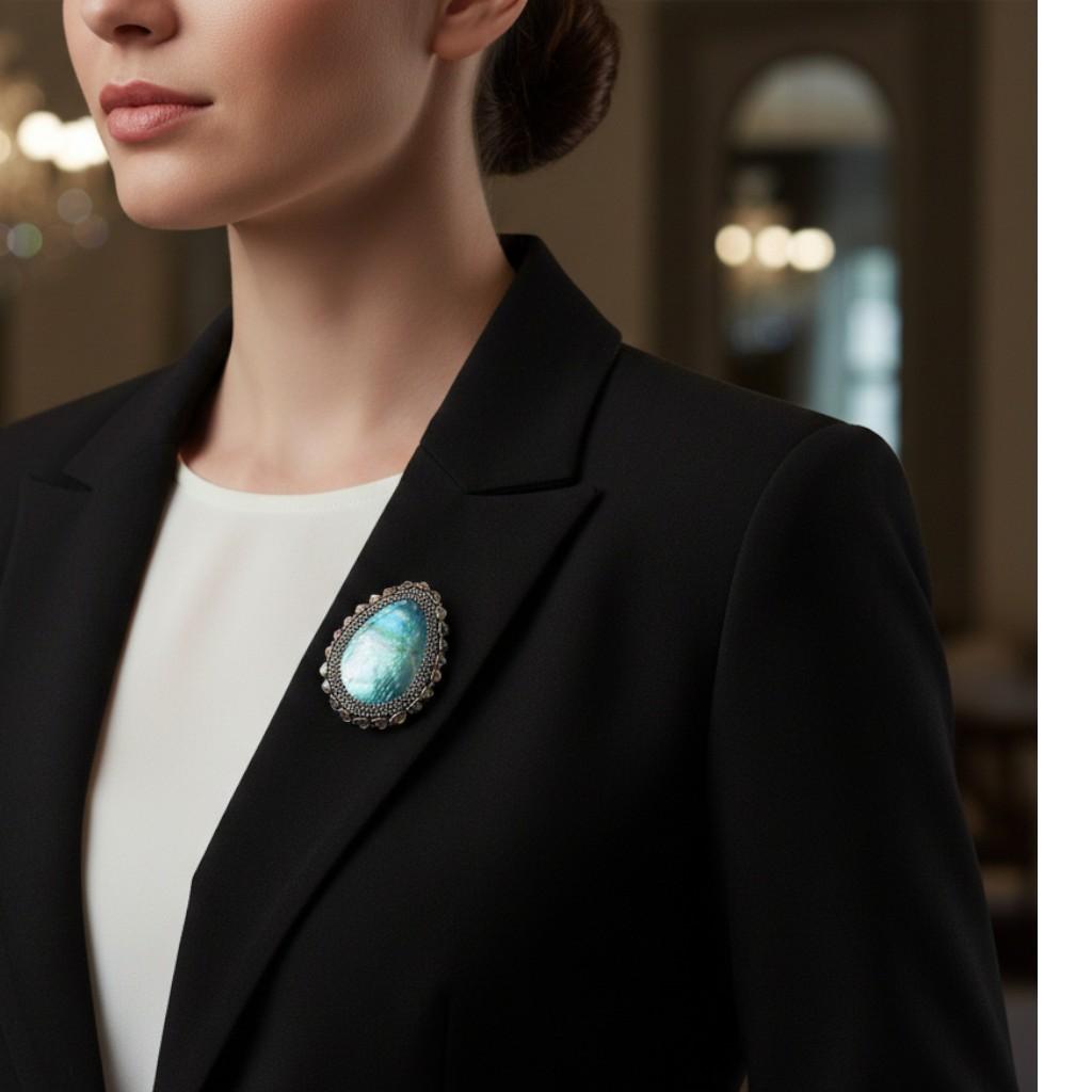 Versatilitate 2-în-1: Datorită agățătorii discrete de pe spate, brosa se poate transforma instantaneu într-un pandantiv spectaculos. O poți purta pe un lanț delicat sau pe un șnur de mătase (sau orice alta baza de la alta bijuterie pe care o ai adeja), adaptându-se ușor atât unei ținute lejere, cât și unei ocazii speciale.