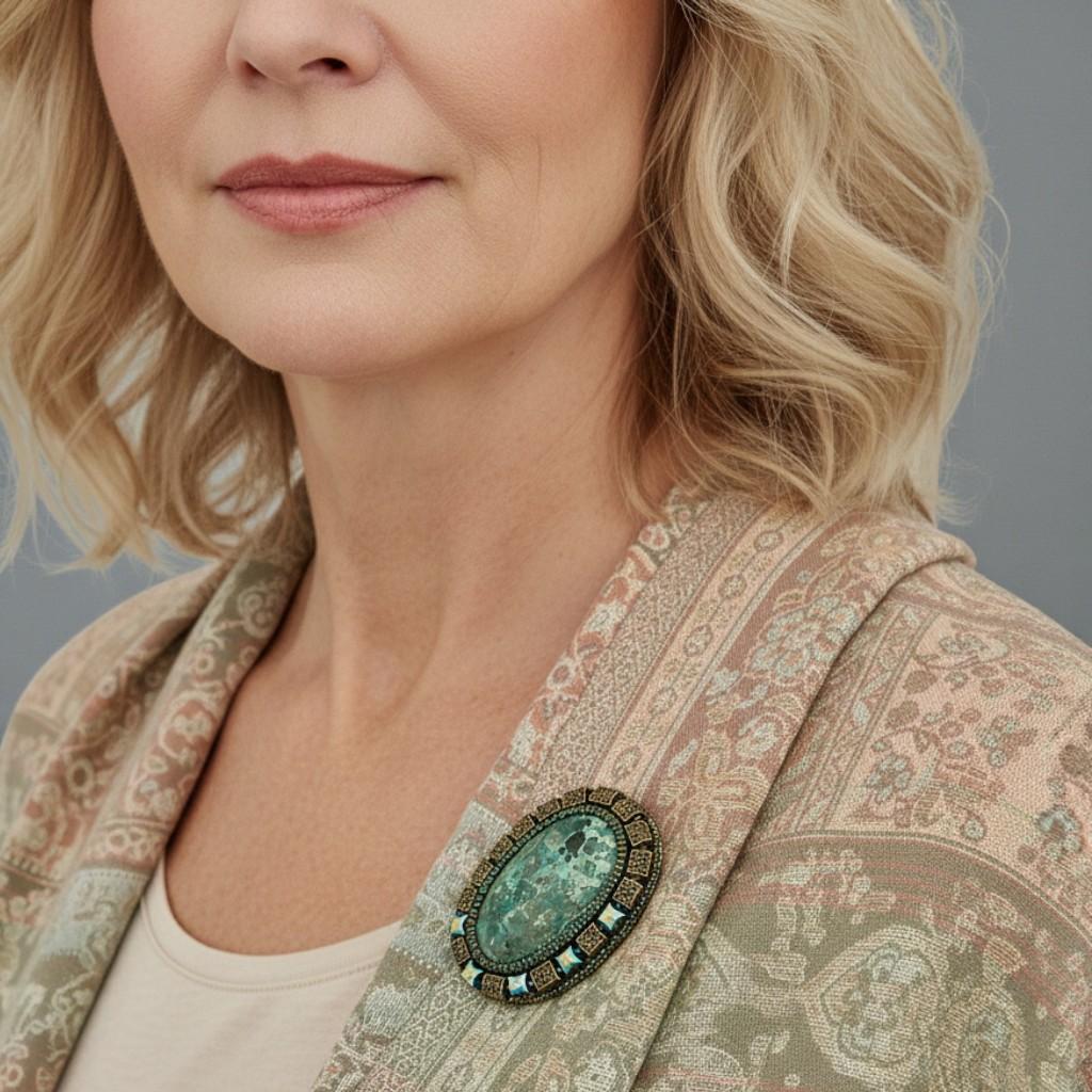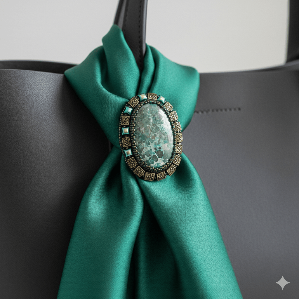 - Accent de eșarfă: Folosiți o broșă pentru a fixa o eșarfă pe loc. Acest lucru nu numai că adaugă un element decorativ, dar servește și unui scop practic, menținând eșarfa ordonată.