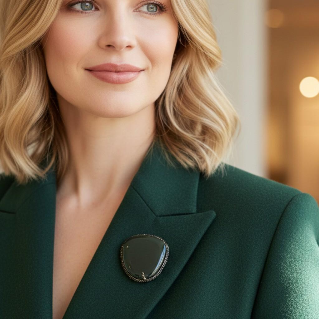 Broșă Statement din Agat Verde Închis – Eleganță Naturală (65 mm)