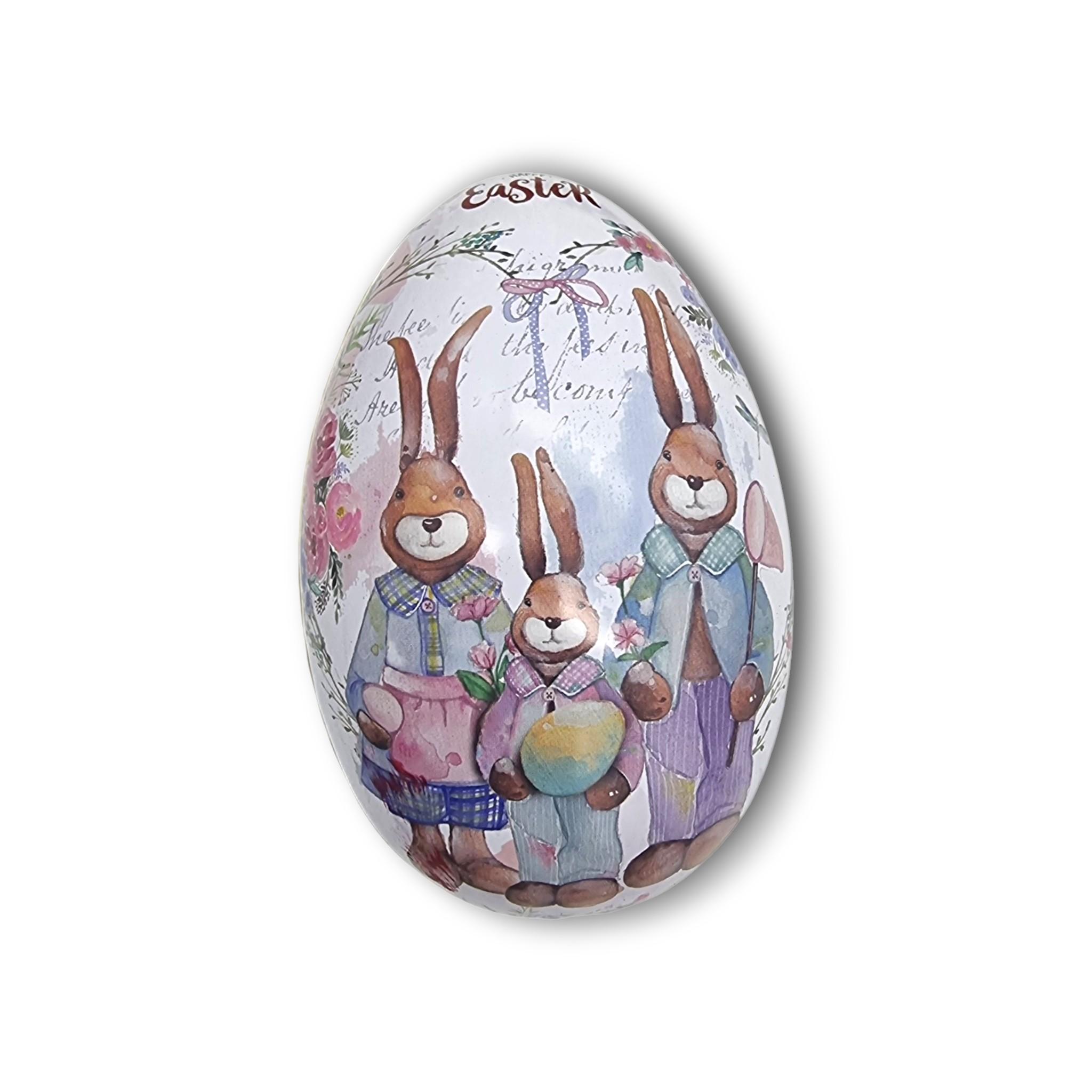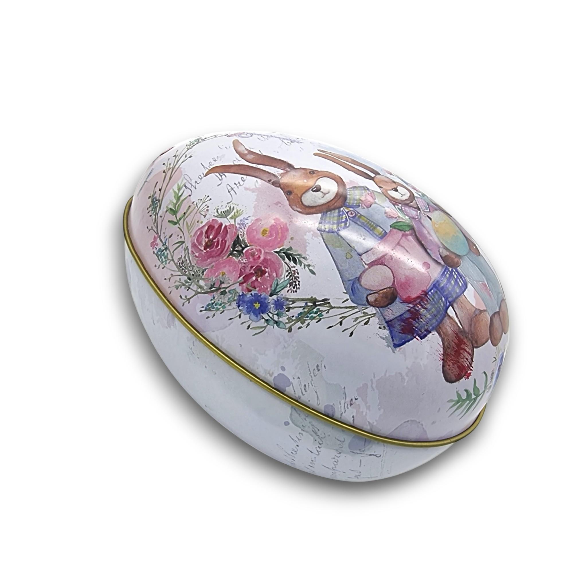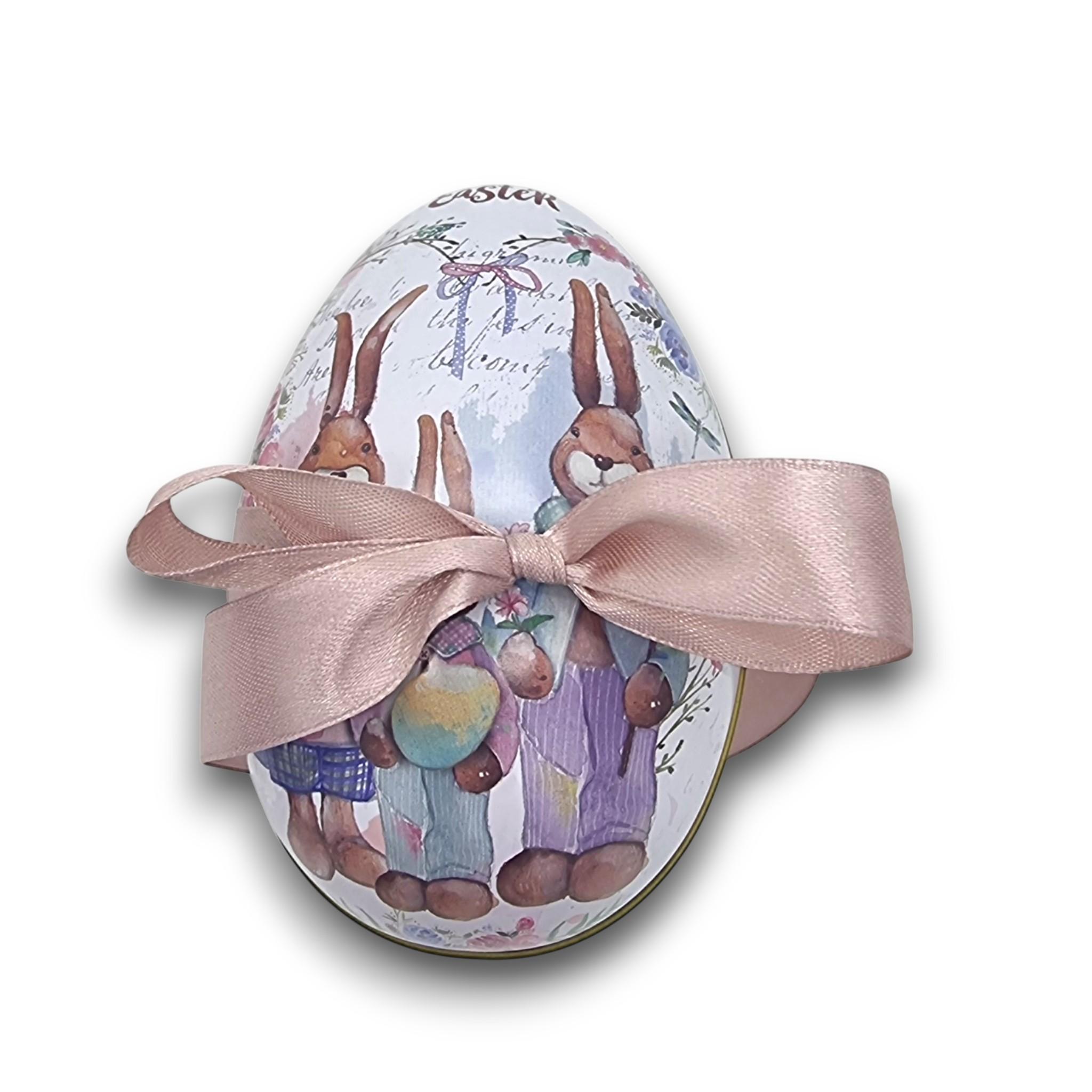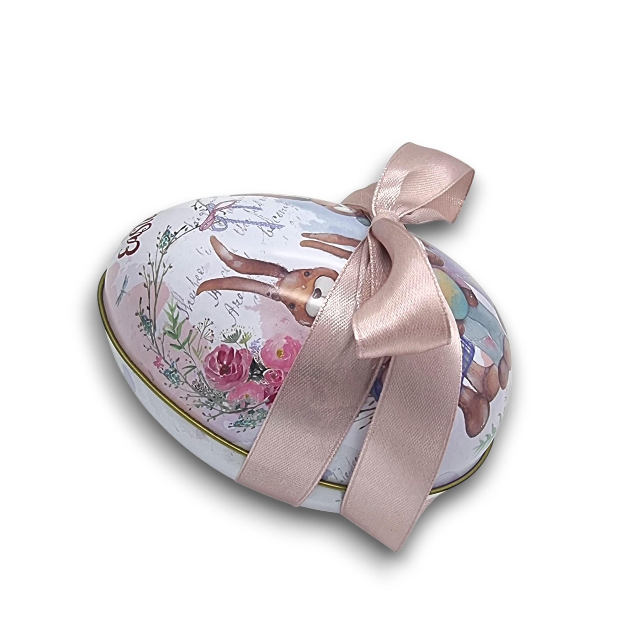 Ambalaj Premium: Ou metalic cu înălțimea de 13 cm, rezistent și reutilizabil, decorat cu o panglică satinată.