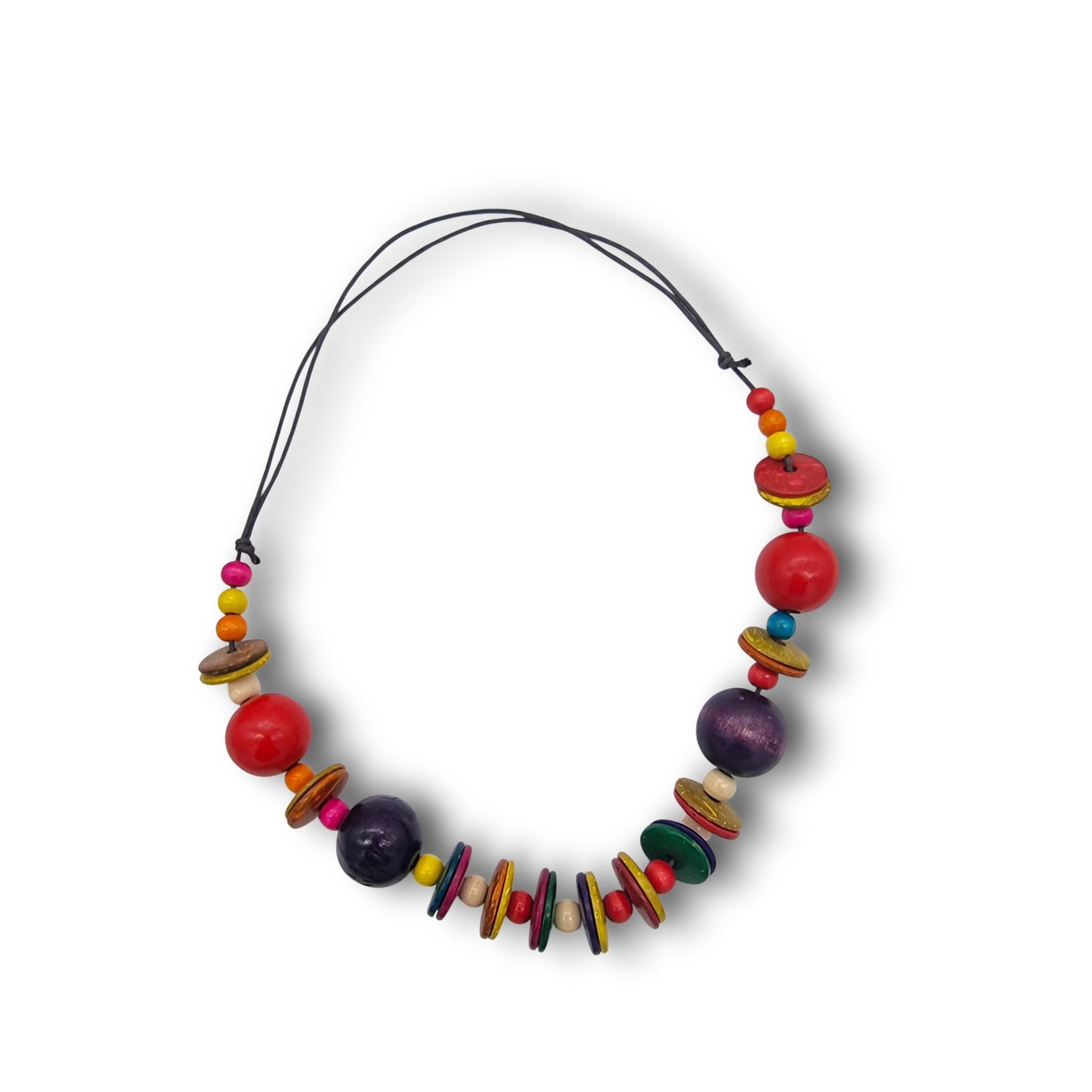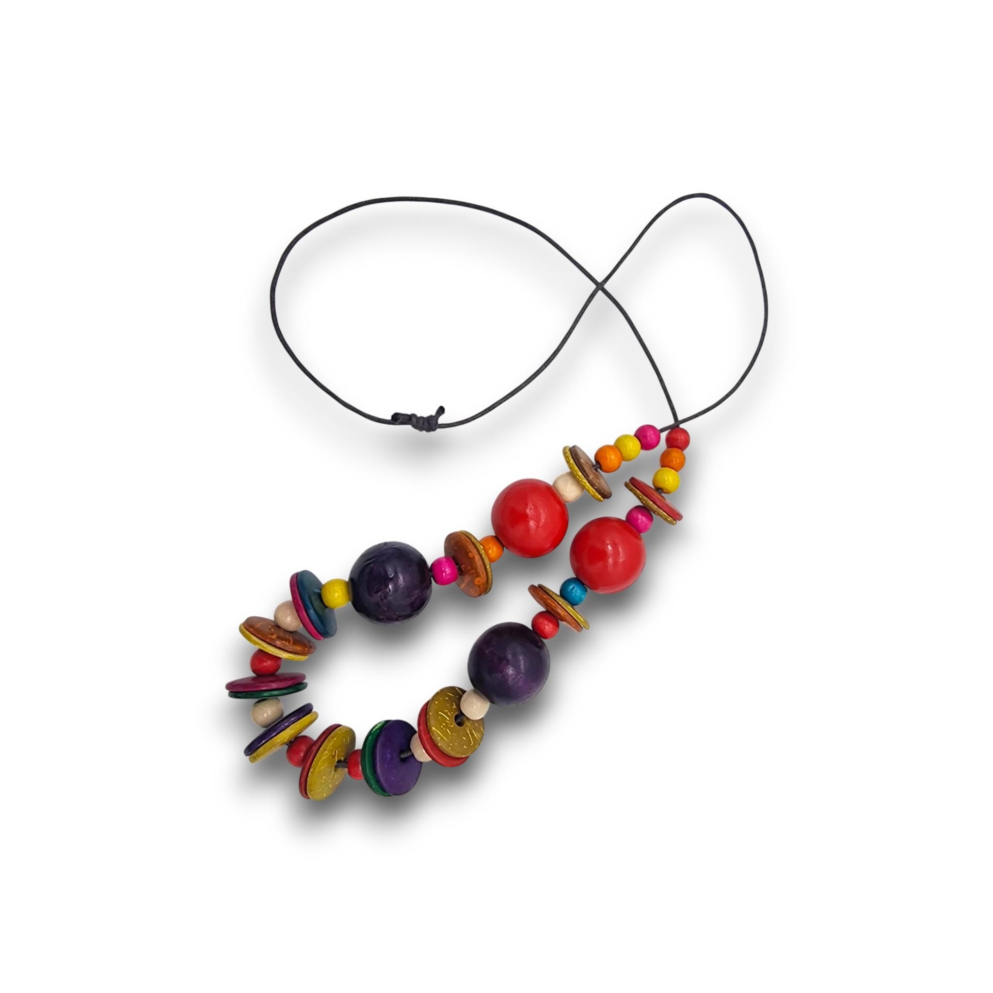 Colier Handmade: Realizat din mărgele de lemn de mari dimensiuni (aproximativ 2 cm), cu finisaje impecabile.