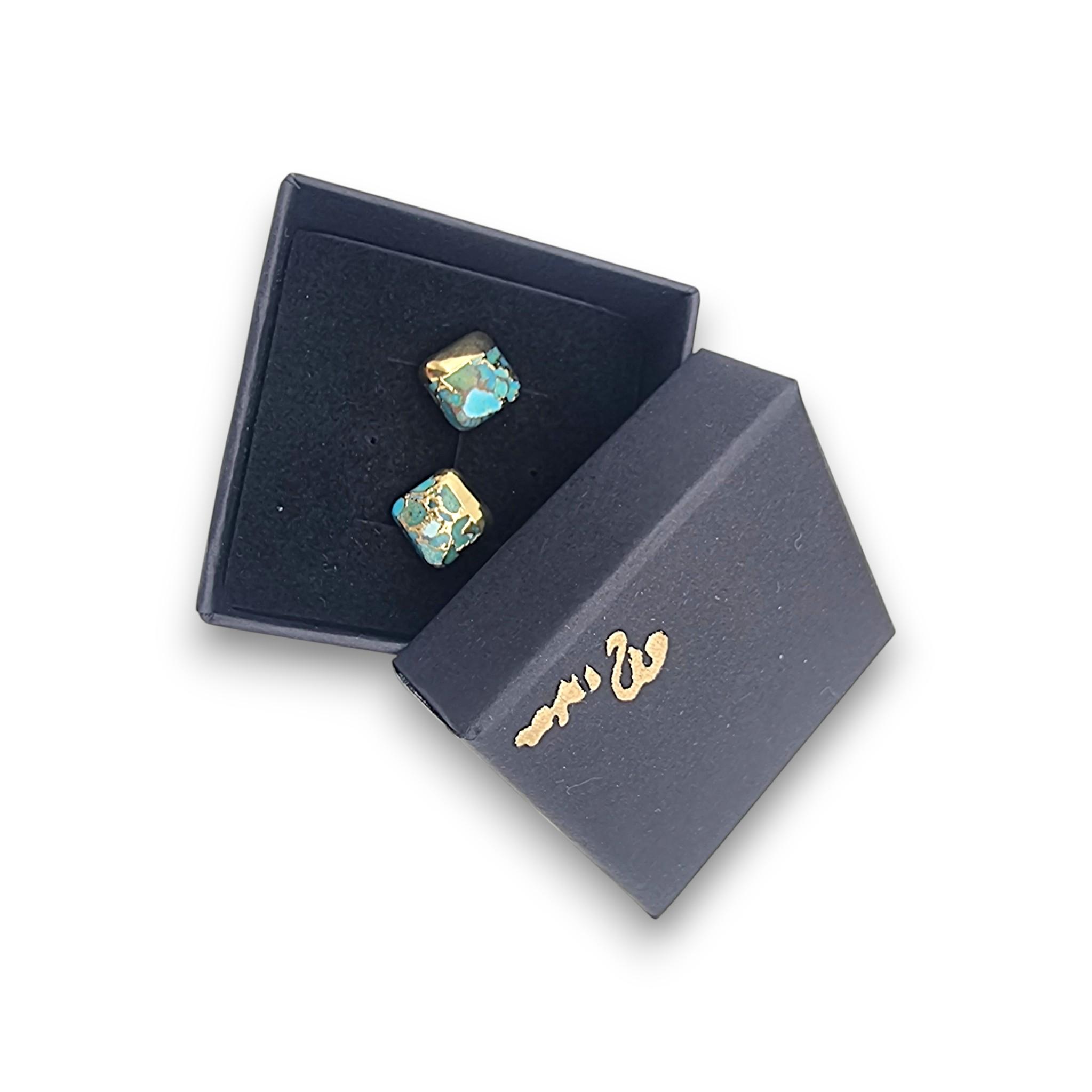 Cercei turquoise mici pătrați, cu latura 10 mm