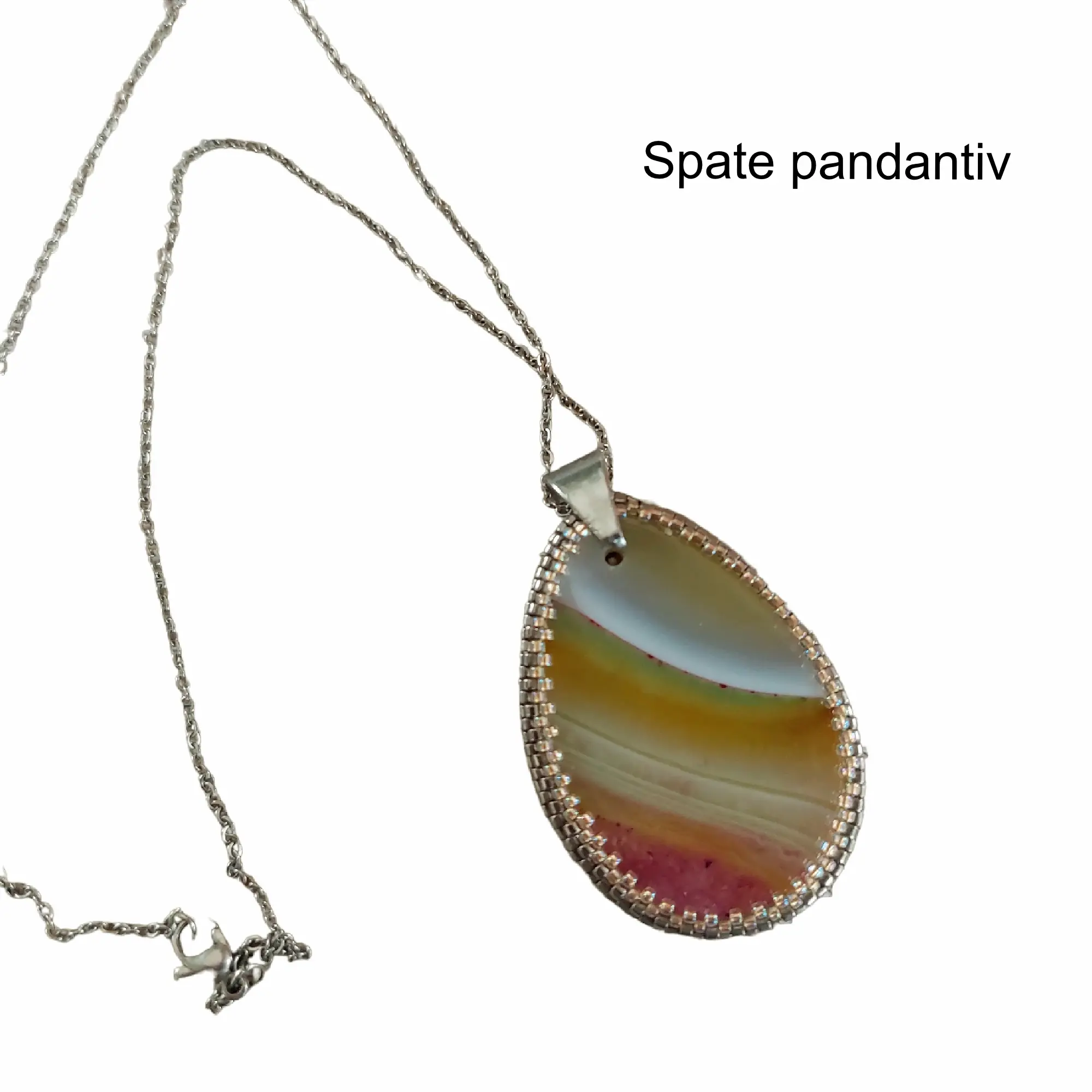 Agatul ales este înconjurat de o țesătură lucrată manual, din mărgele japoneze foarte mici. Tehnica de lucru se numește ”Peyote” și necesită multă răbdare și atenție. O greșeală cât de mică poate necesita uneori reluarea de la zero a elementului lucrat în această tehnică.