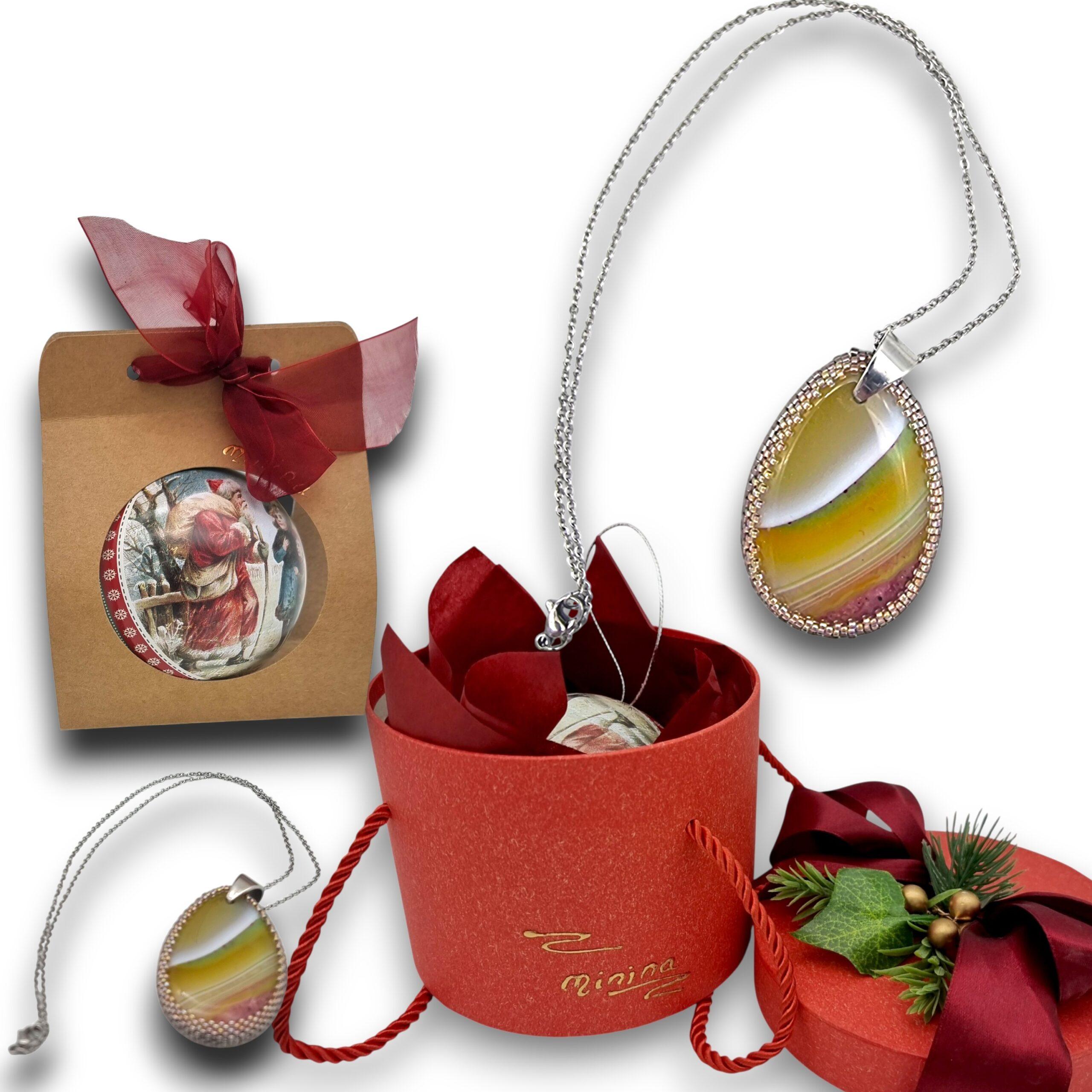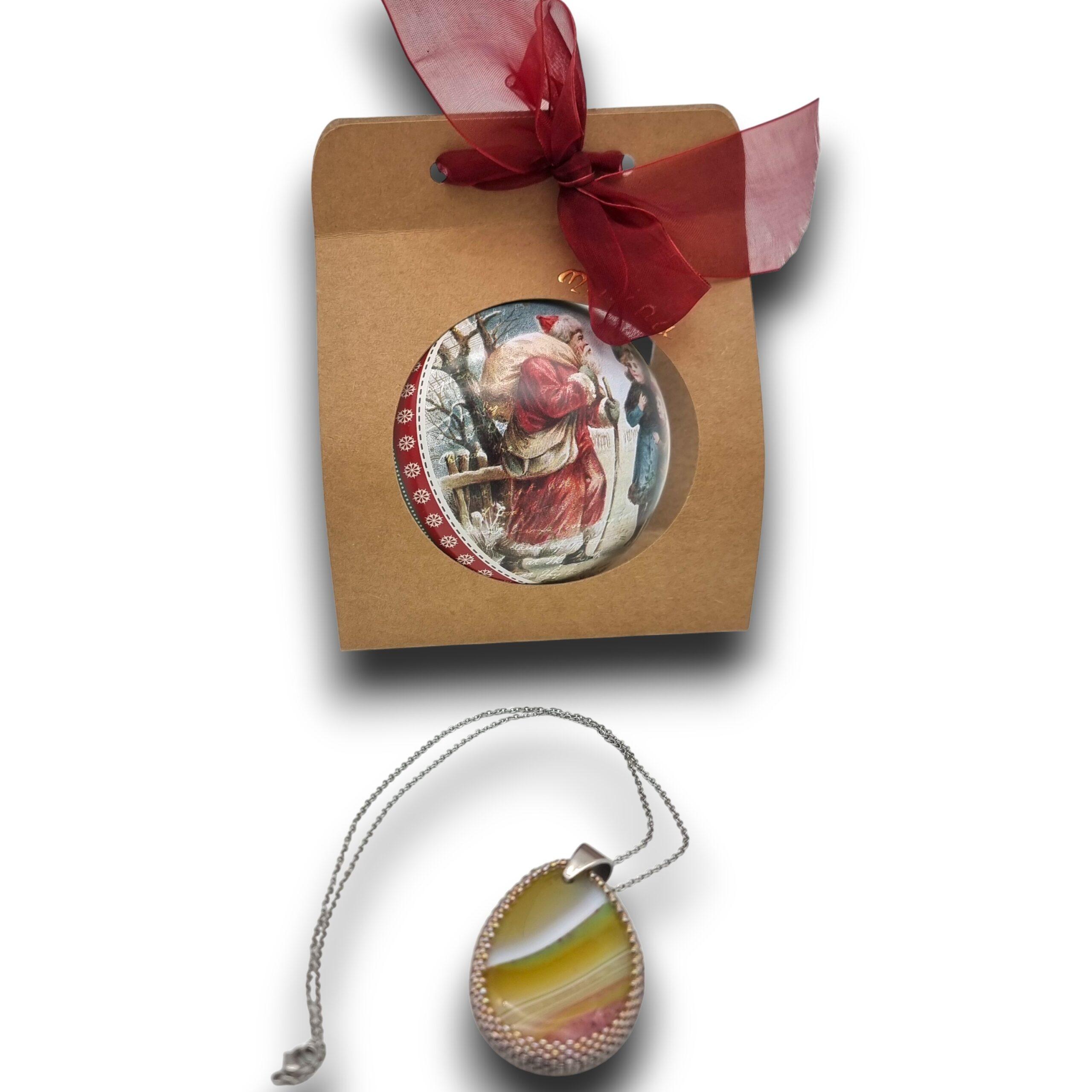 Produsul ”Colier agat colorat in glob cadou Crăciun” se poate comanda in doua tipuri de ambalare cadou: