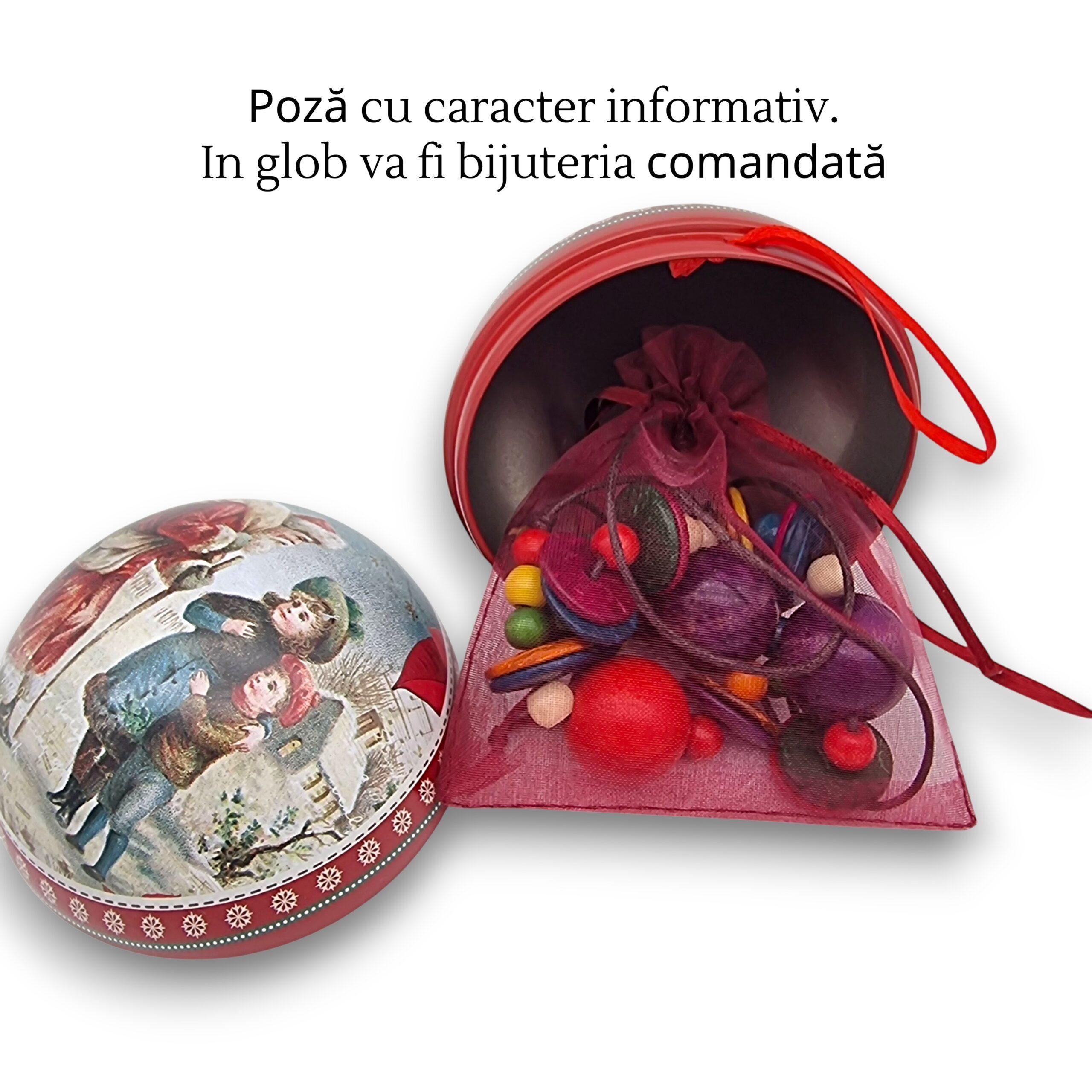 Colierul, in saculeț cadou, se introduce în Globul cu model specific Sărbatorilor de iarna.