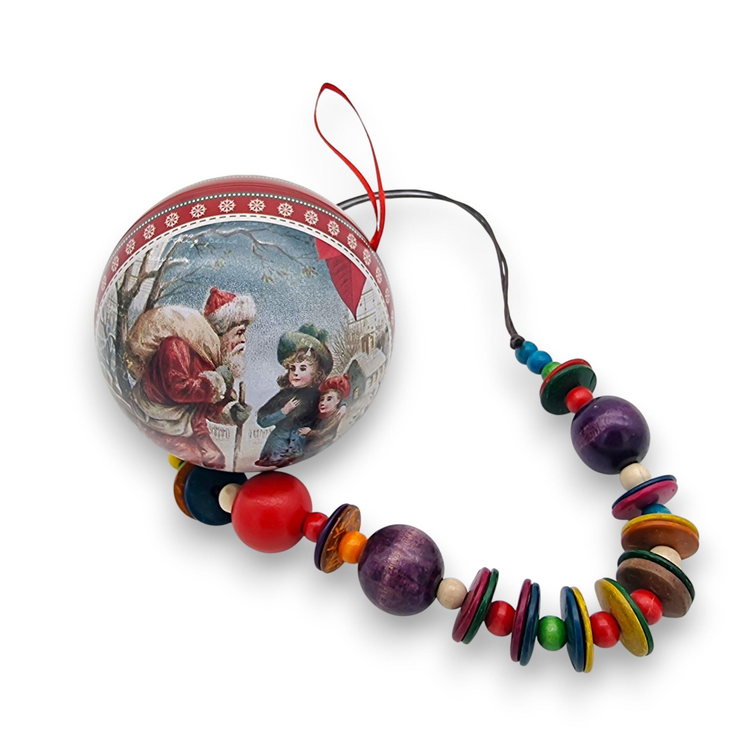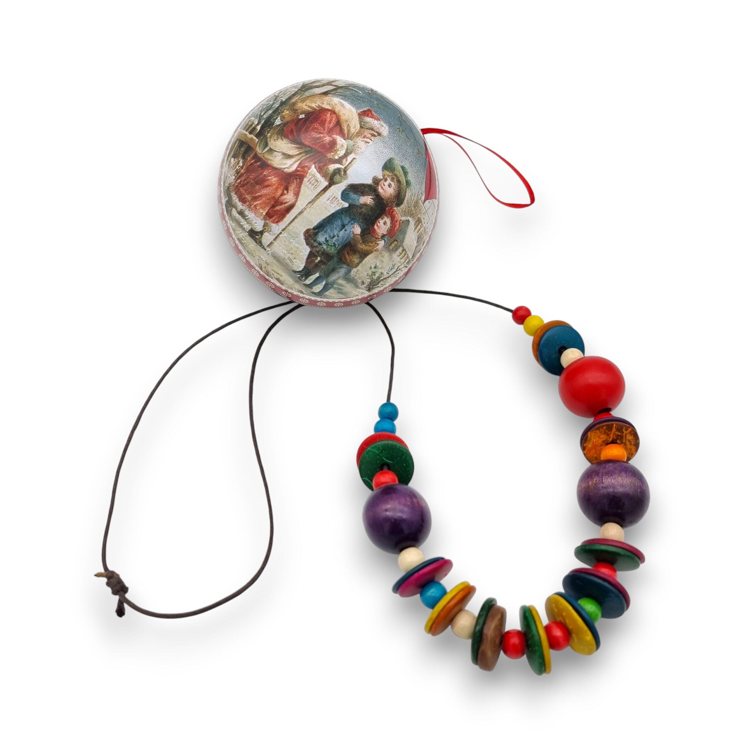 Colierul, in saculeț cadou, se introduce în Globul cu model specific Sărbatorilor de iarna.