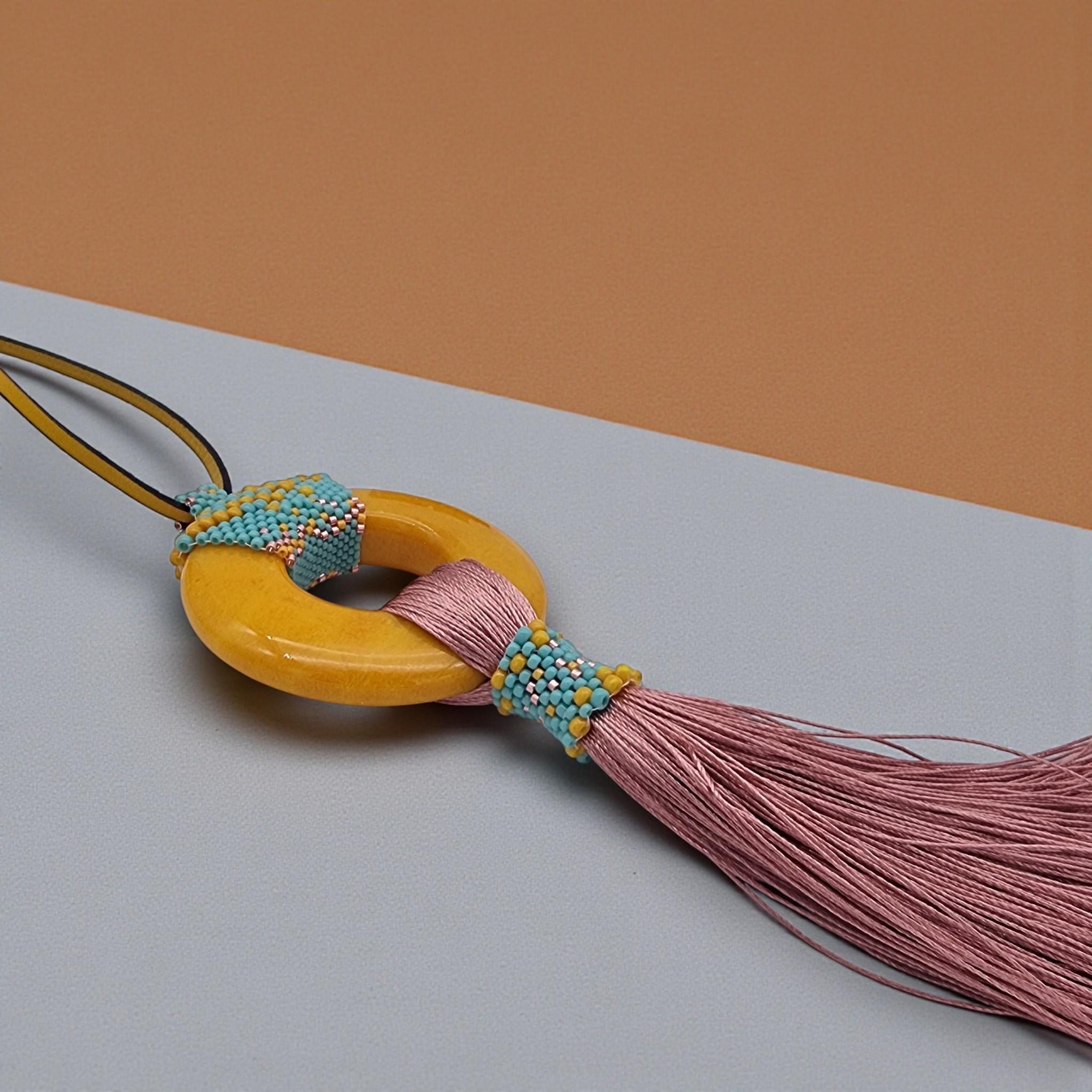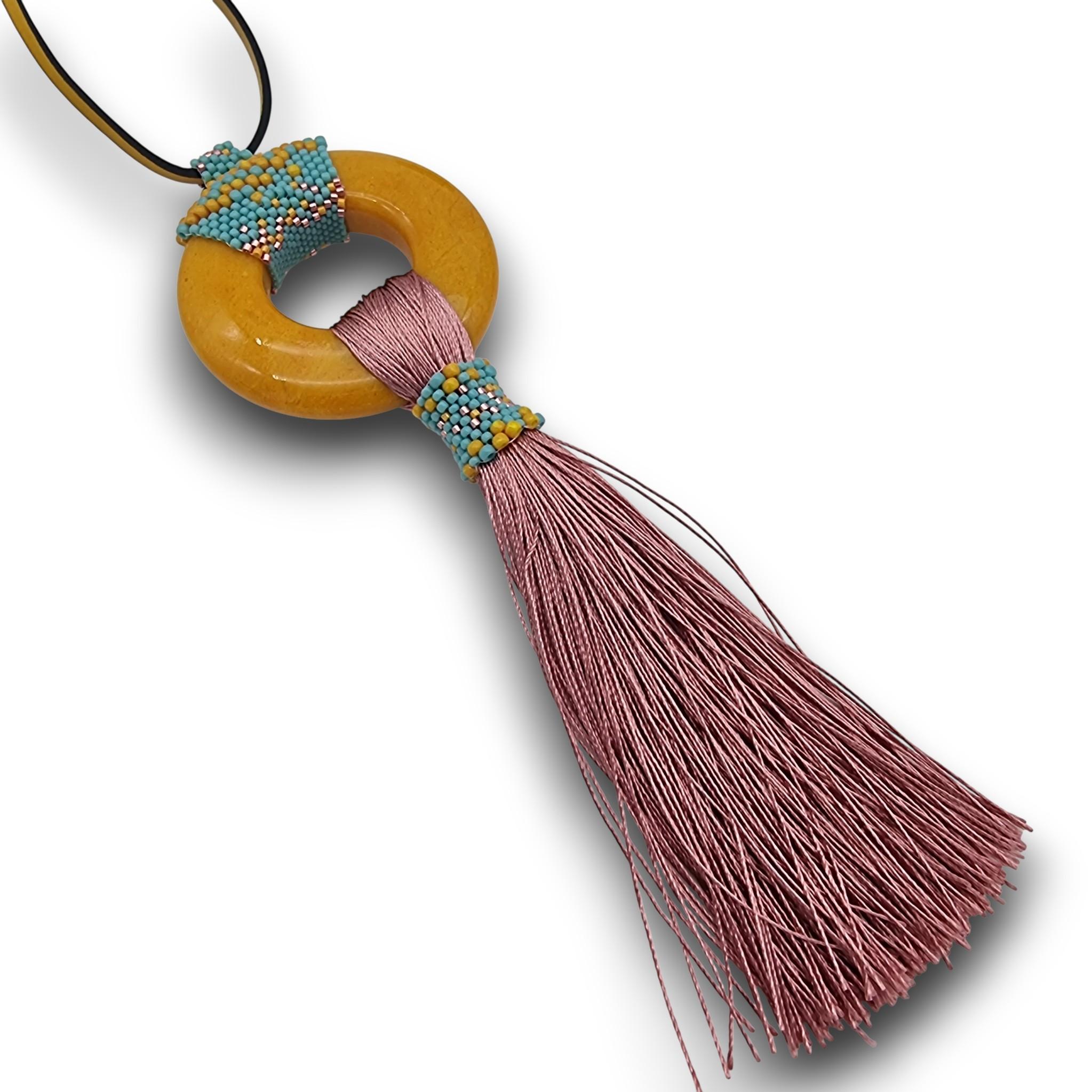 Colier de Vară – Pandantiv din Alabastru cu Ciucure (20 cm)