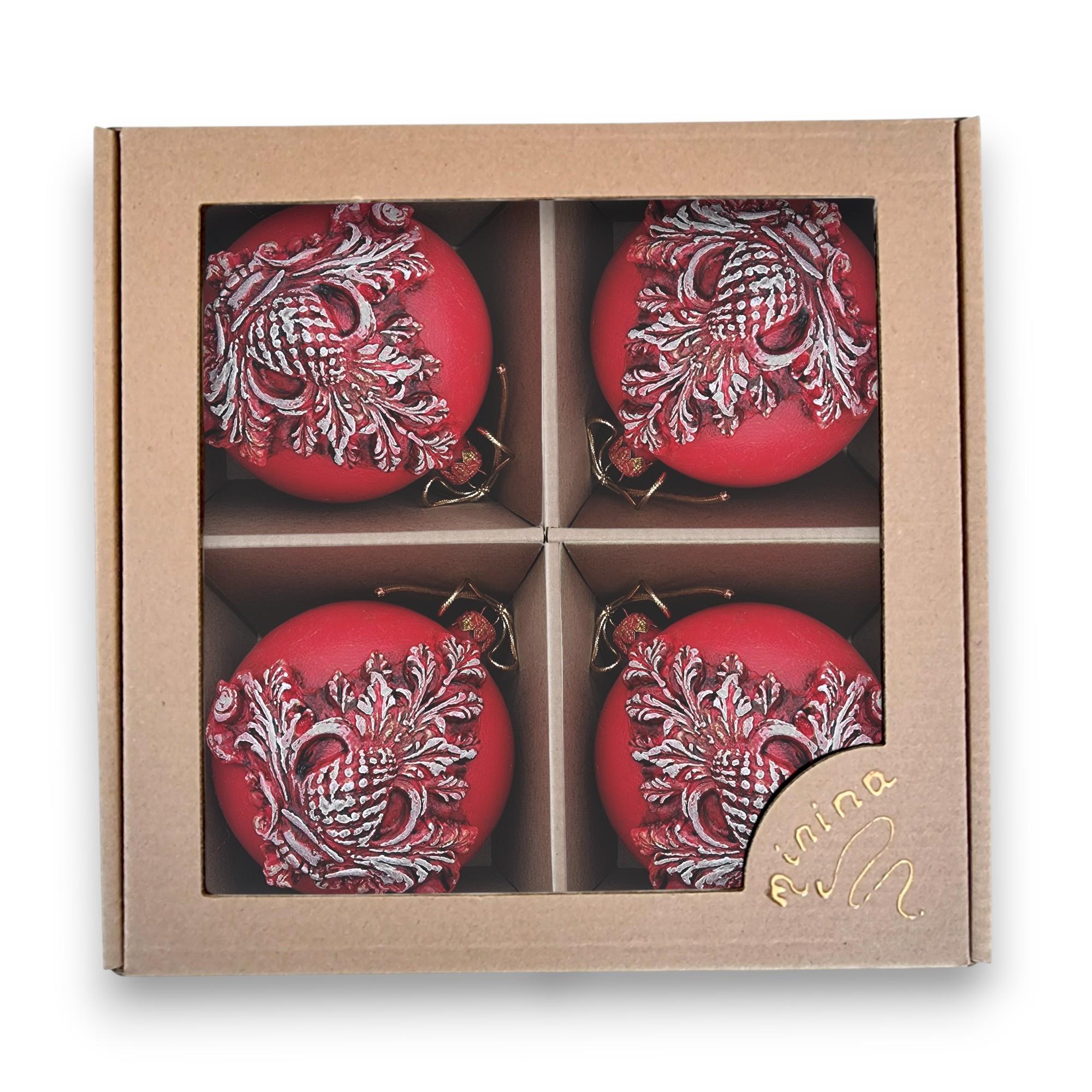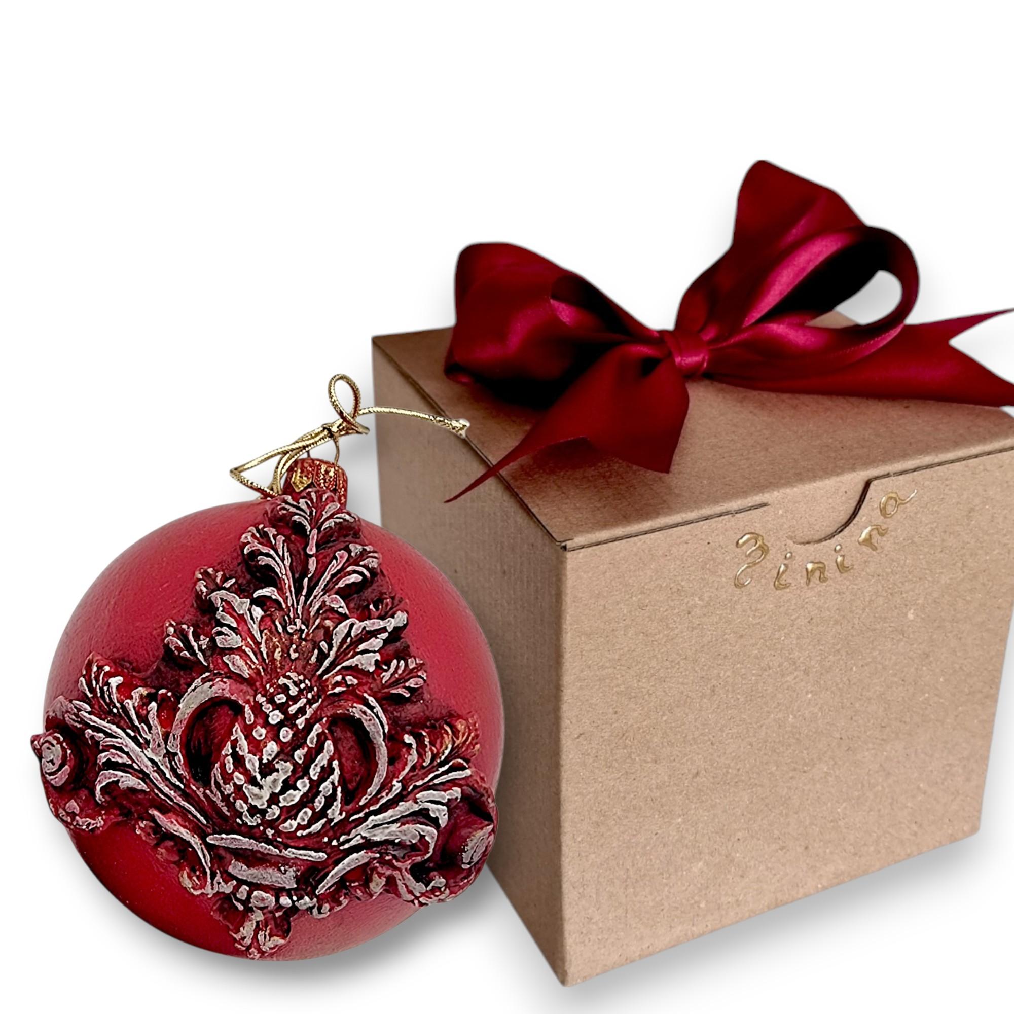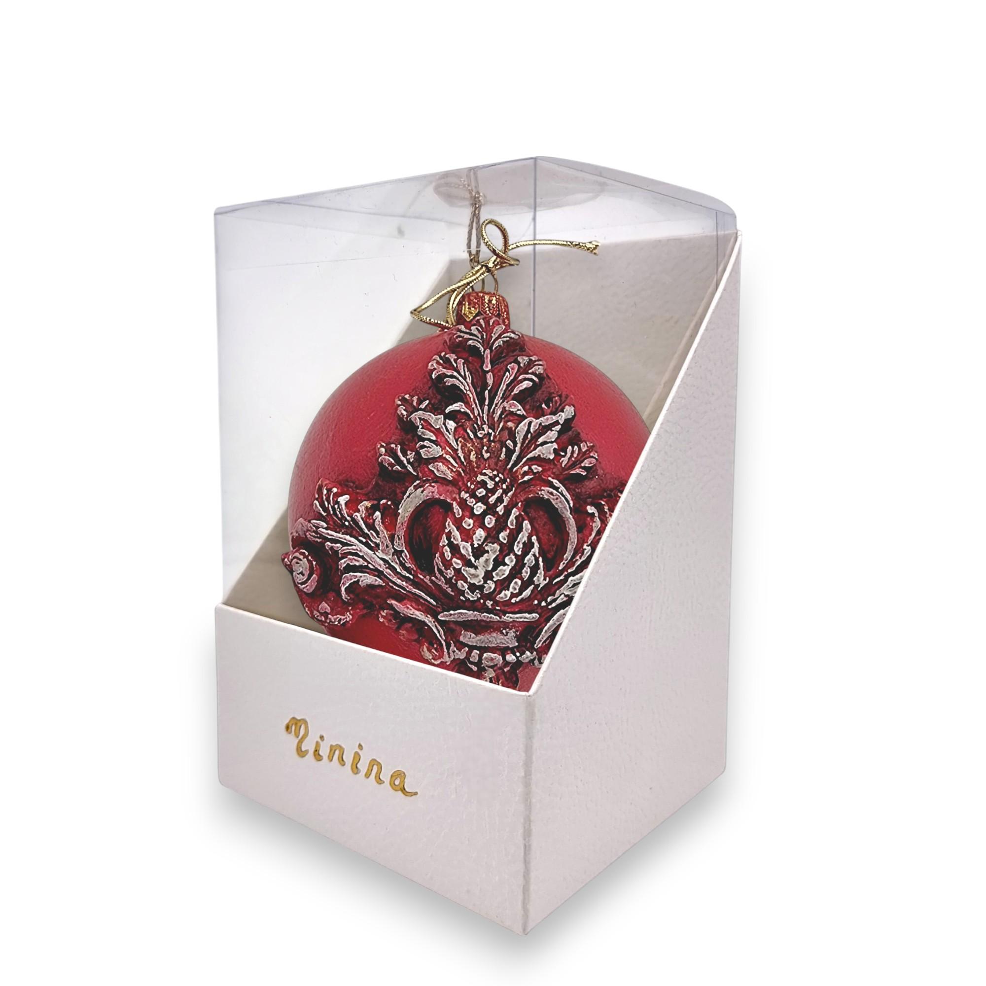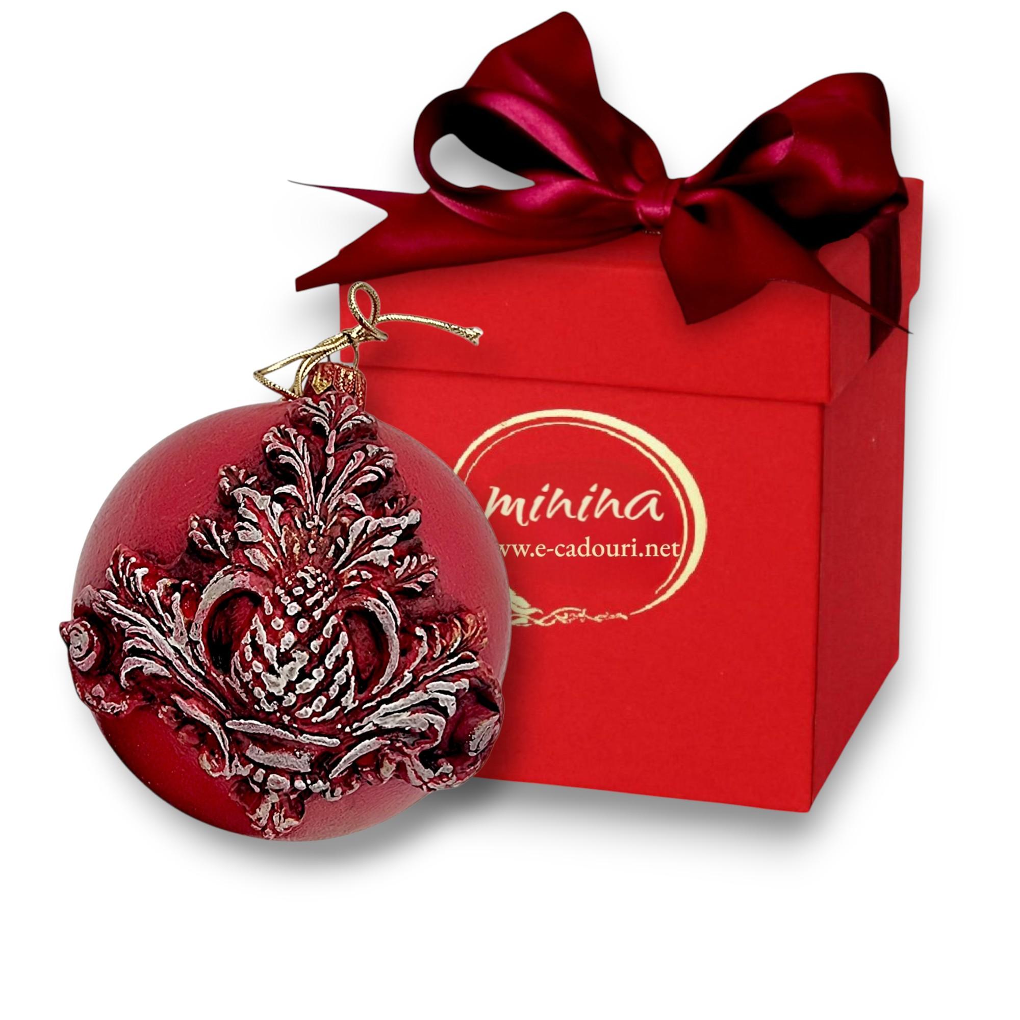 Produsul ”Globuleț roșu cu alb 10 cm, model baroque” se vinde în diverse tipuri de ambalare.