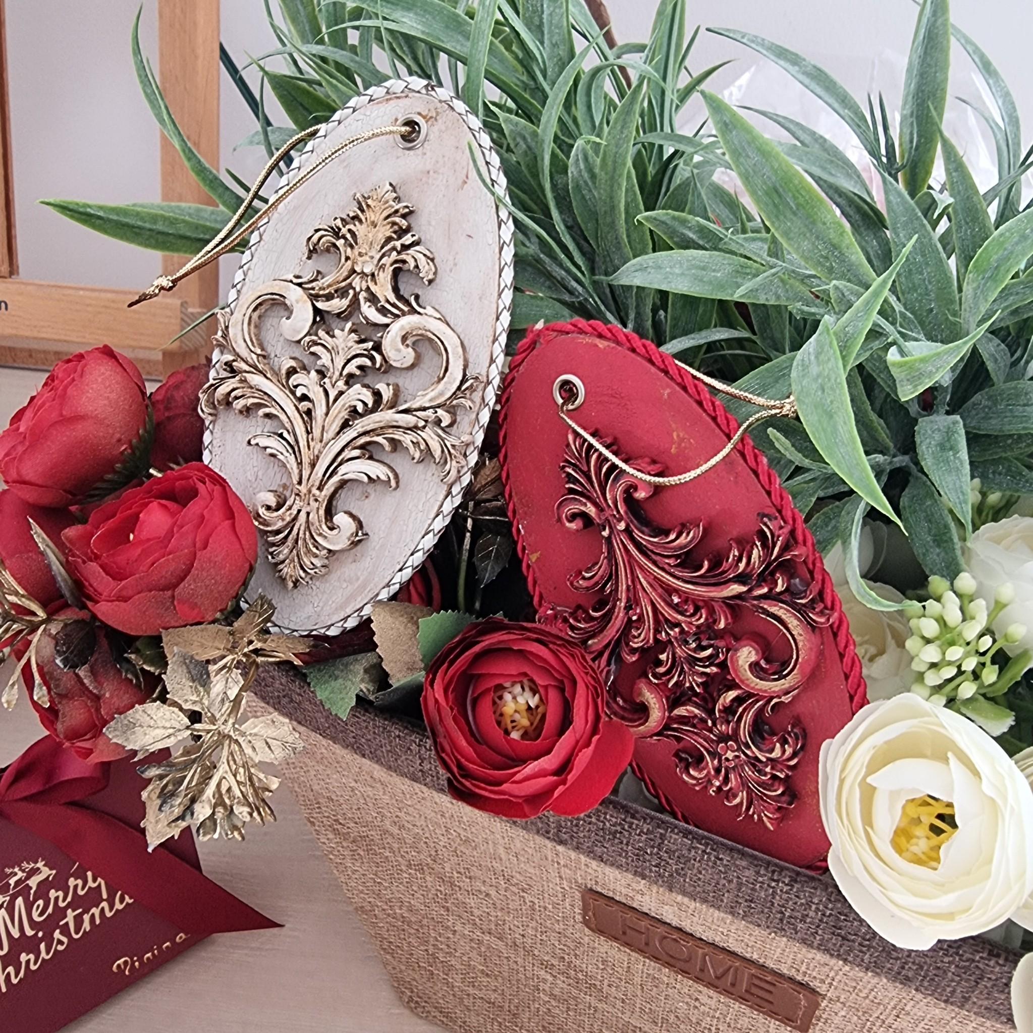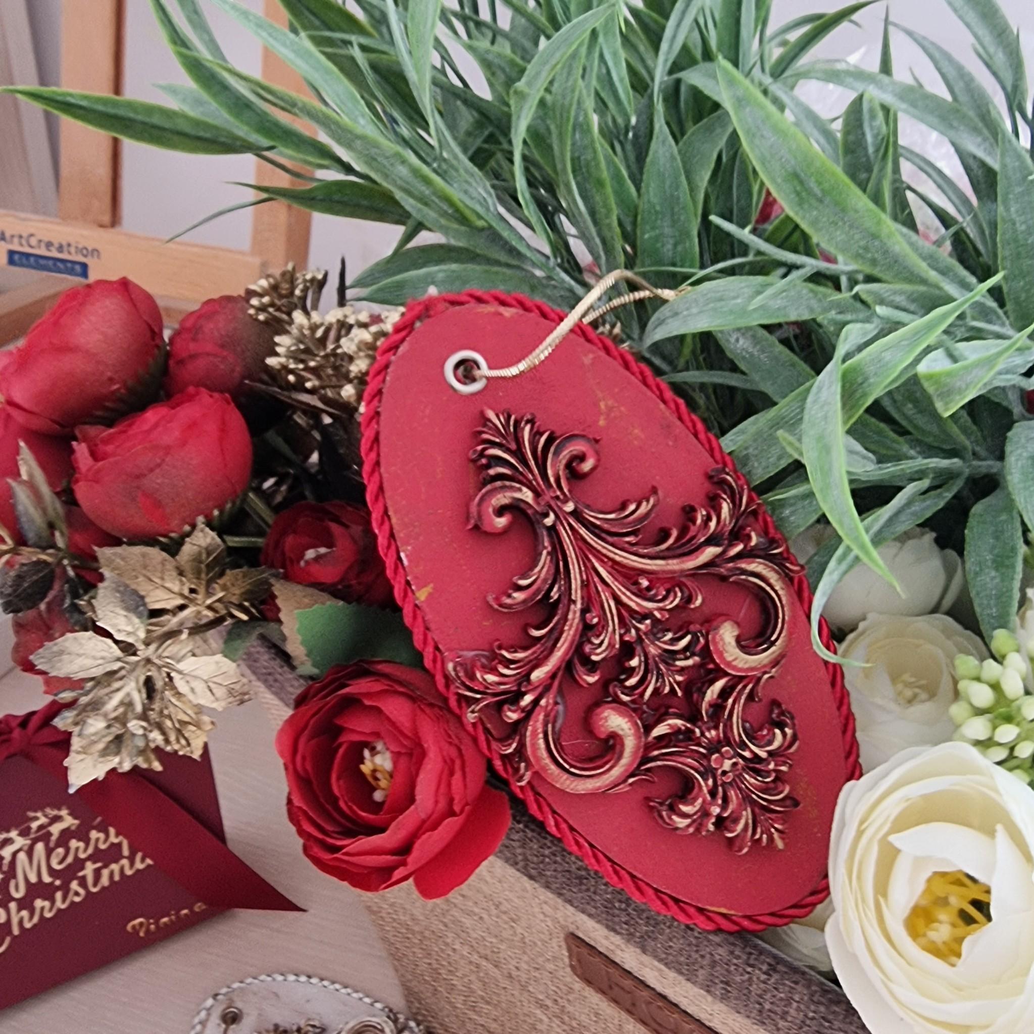 Un ornament cu aer baroque, elegant și plin de farmec, ambalat festiv, devine un mic dar de Crăciun cu suflet. Lucrat manual și decorat în stil vintage, poate fi oferit ca gest simbolic sau adăugat unui cadou mai mare, aducându-i o notă de rafinament și bucurie.