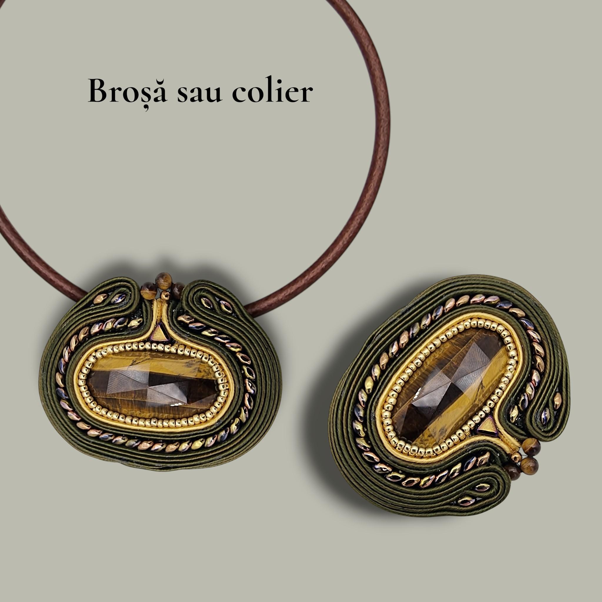 Broșă și Colier „Solar Spirit” – Ochi de Tigru și Soutache