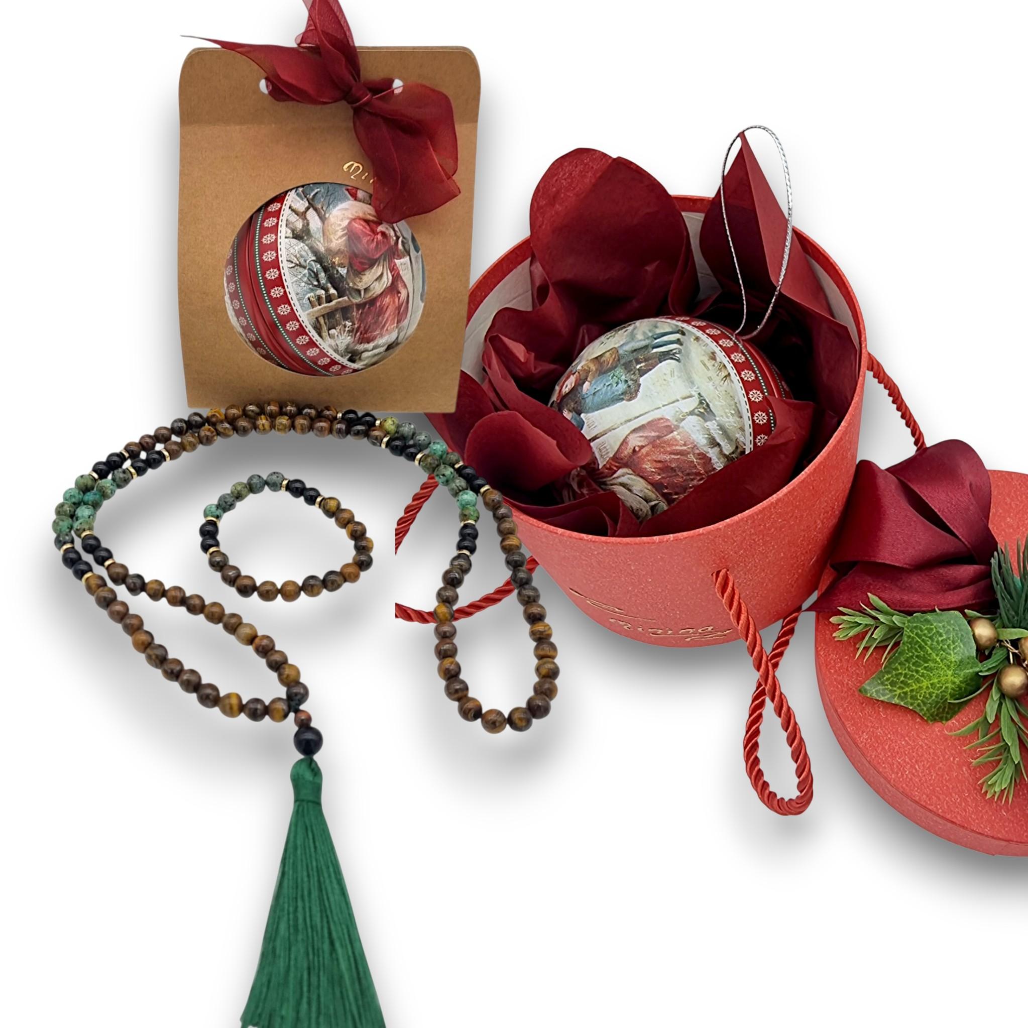 Produsul ”Set colier Mala in glob cadou Crăciun” se poate comanda in doua tipuri de ambalare cadou: